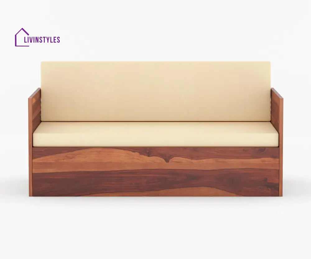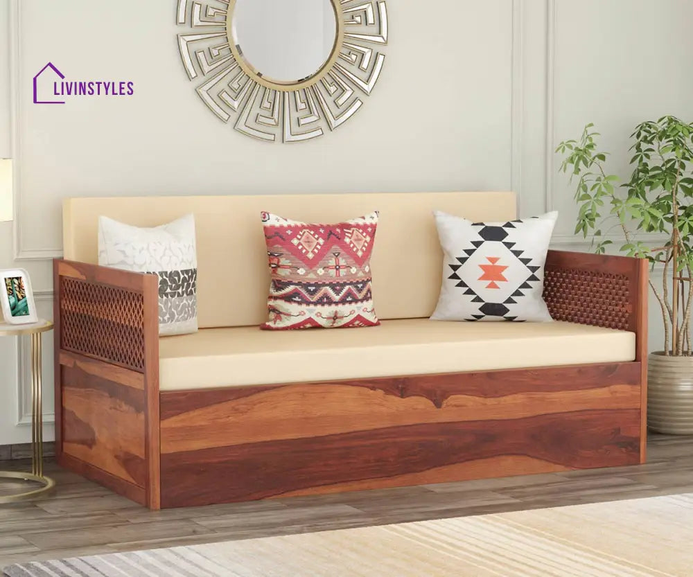 Miron Solid Wood Sheesham Diwan with Mattress | Solid Wood Sofa Come Bed (Honey Finish)