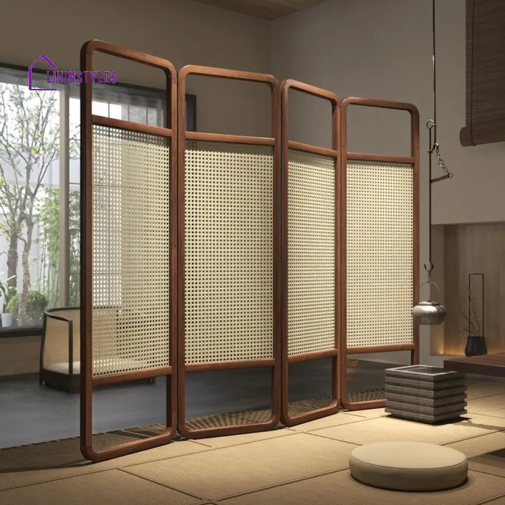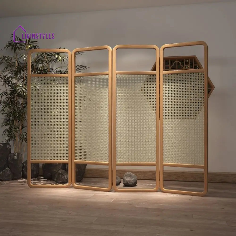 Novella Wooden and Cane Weaving Room Partition for Living Room