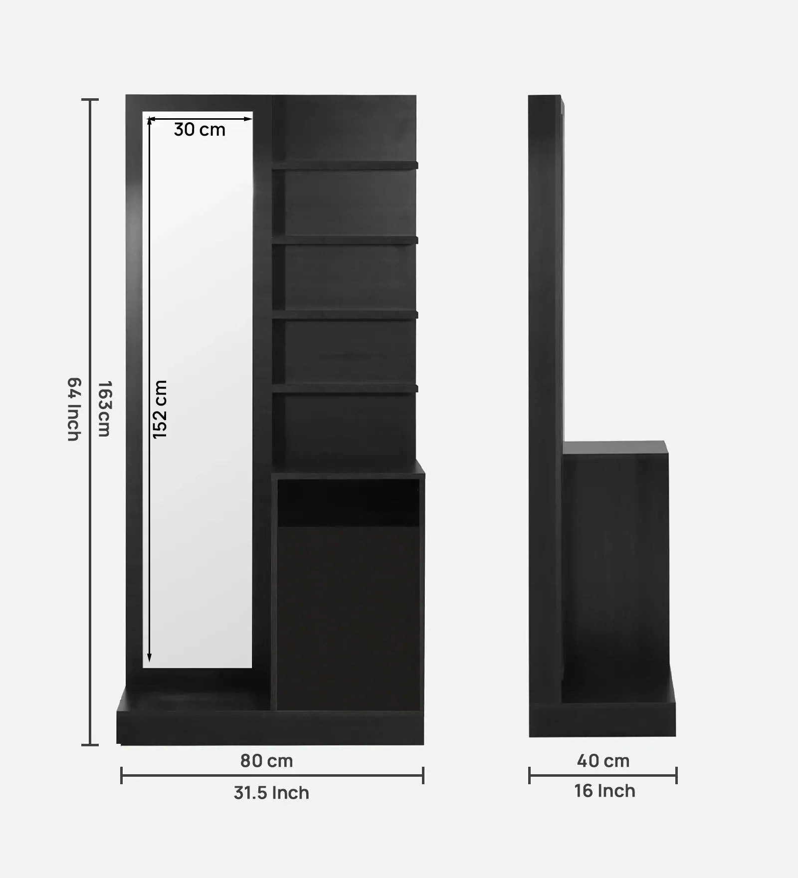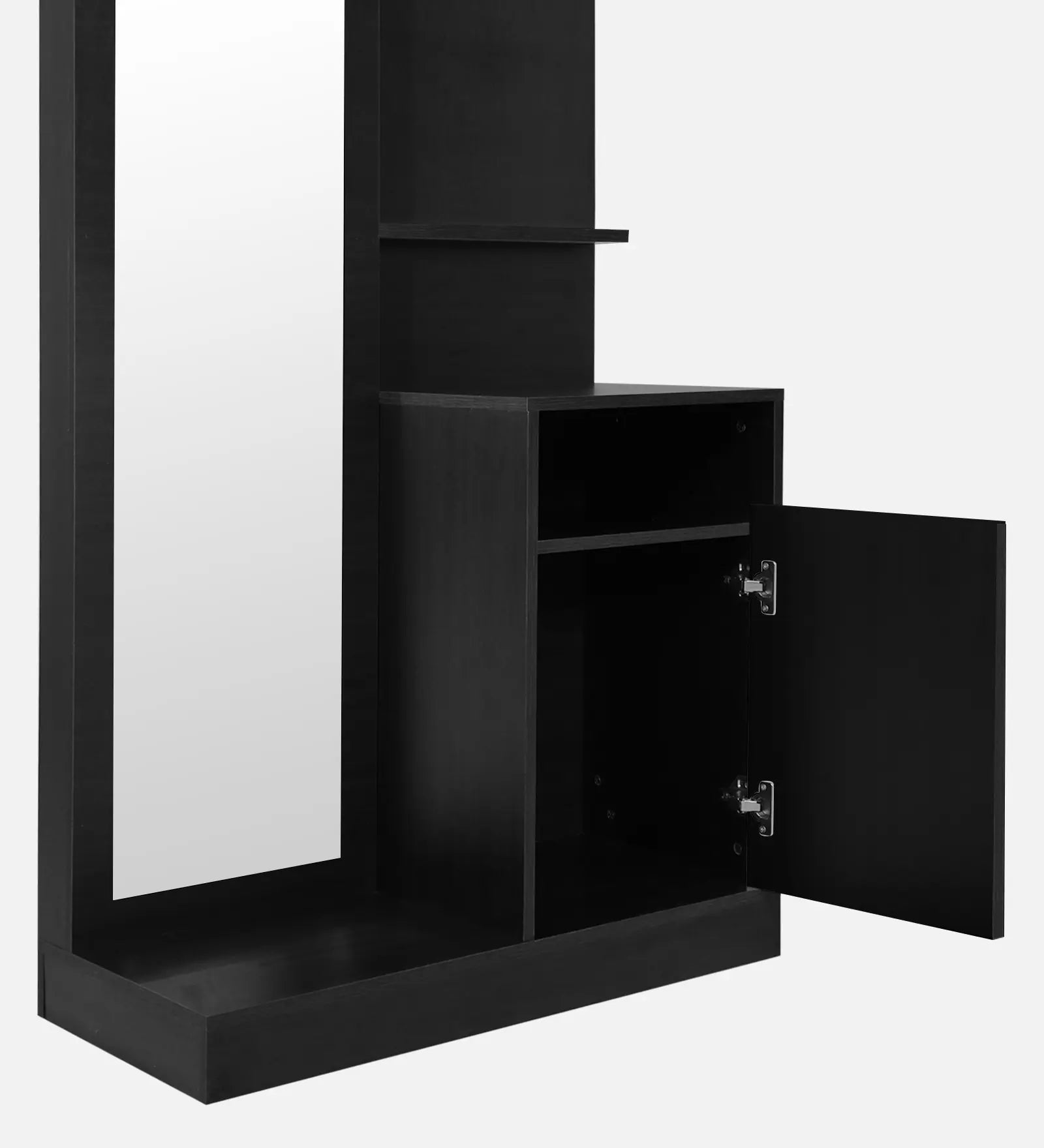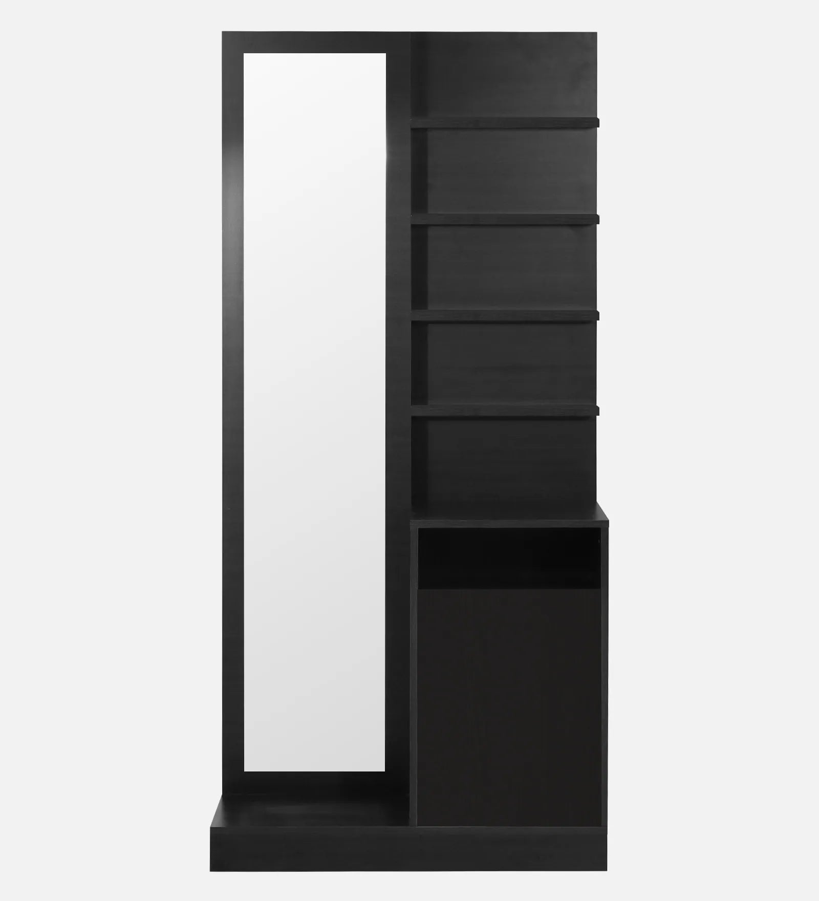 Elevate your personal space with the Omkarwood Élan Dressing Unit – a modern blend of elegance, utility, and craftsmanship. Meticulously crafted from premium engineered wood, this sleek, space-efficient unit features a full-length mirror, multiple open shelves for cosmetics and accessories, and a concealed cabinet for added storage. The rich matte finish and contemporary design make it a standout addition to any bedroom or dressing area.