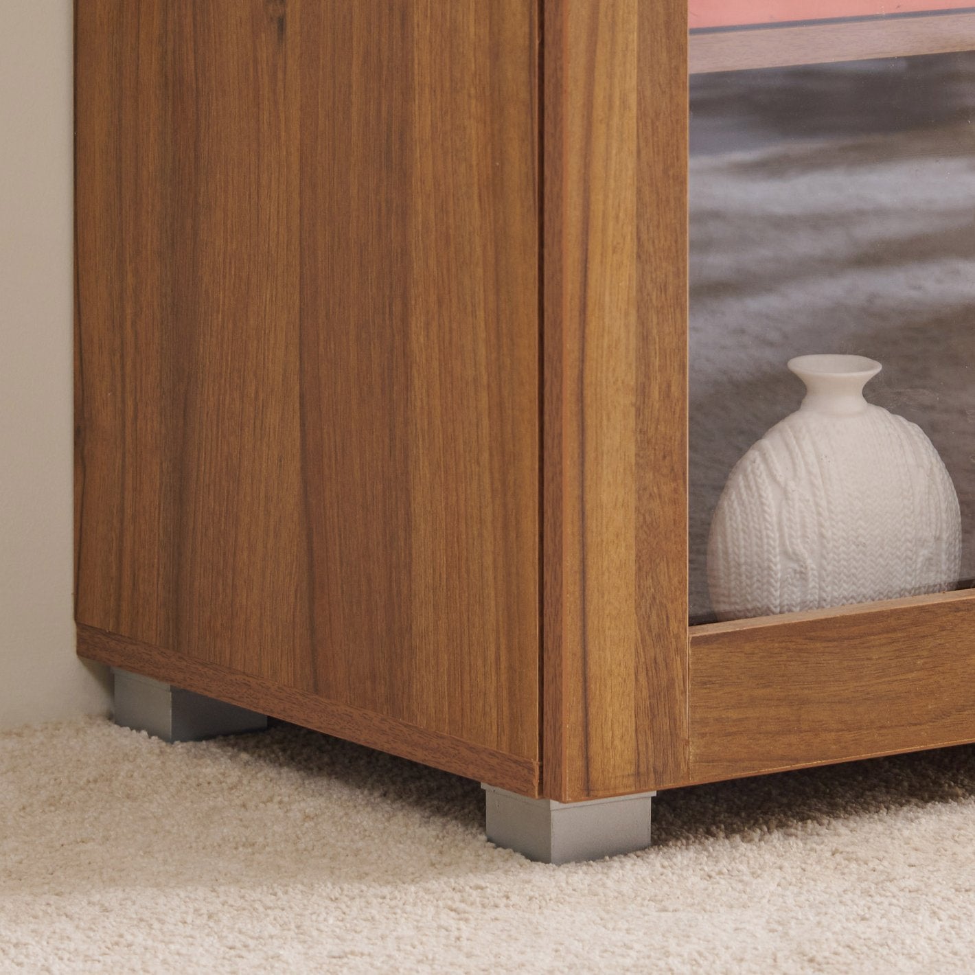 Two glass-door side cabinets for displaying décor or storing media essentials