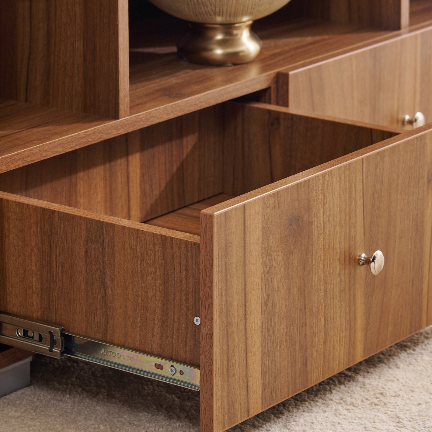 Open central shelves for set-top boxes, gaming consoles, or décor
