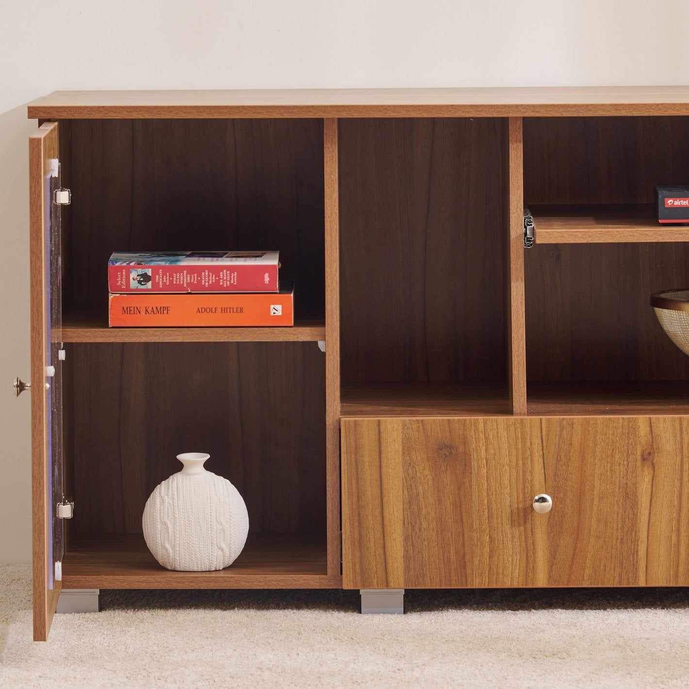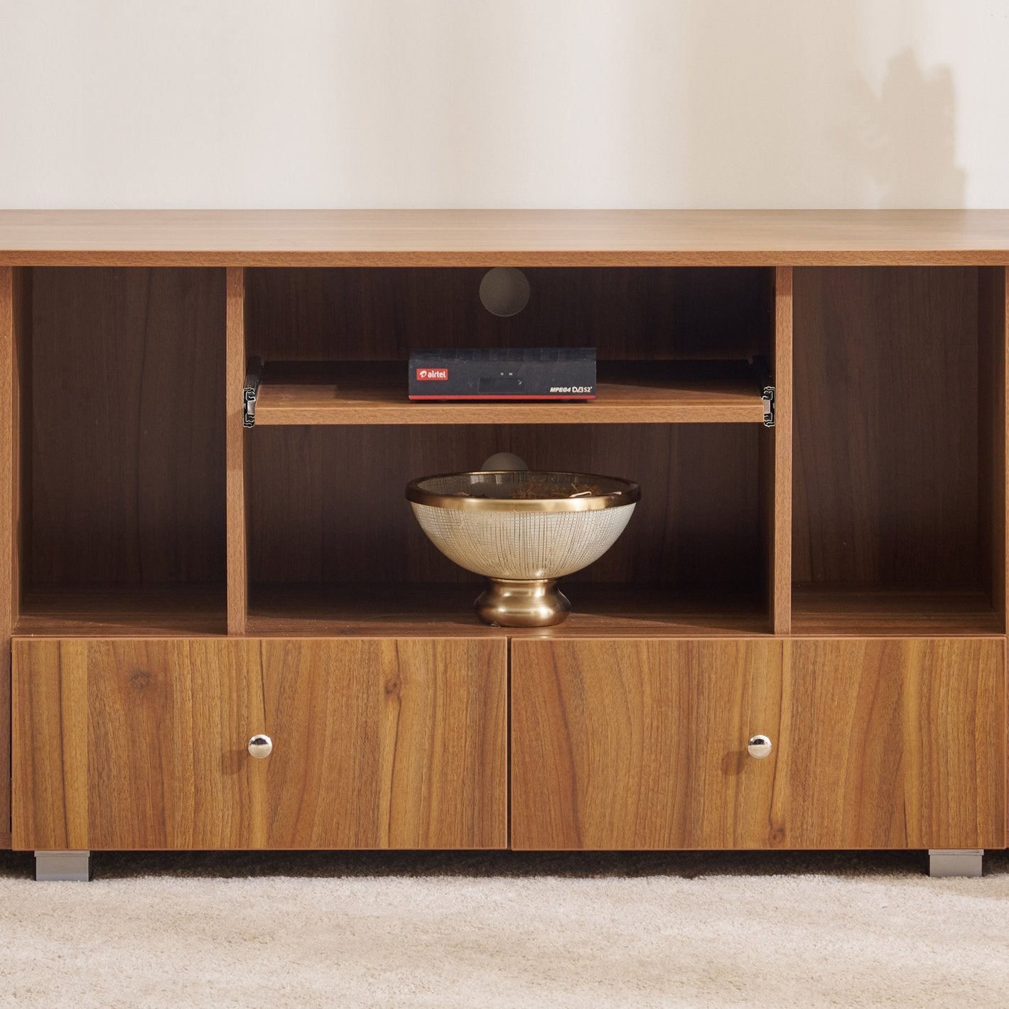 Bring modern elegance and smart functionality into your living space with the Omkarwood EliteView Premium TV Unit. Expertly crafted from high-quality engineered wood, this entertainment unit boasts a sleek walnut finish that complements both contemporary and classic interiors. The wide tabletop accommodates TVs up to 65 inches, while the thoughtfully designed storage includes: