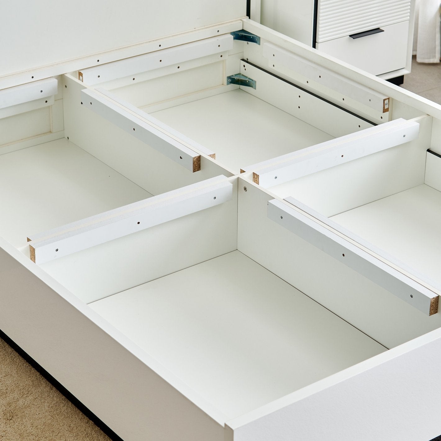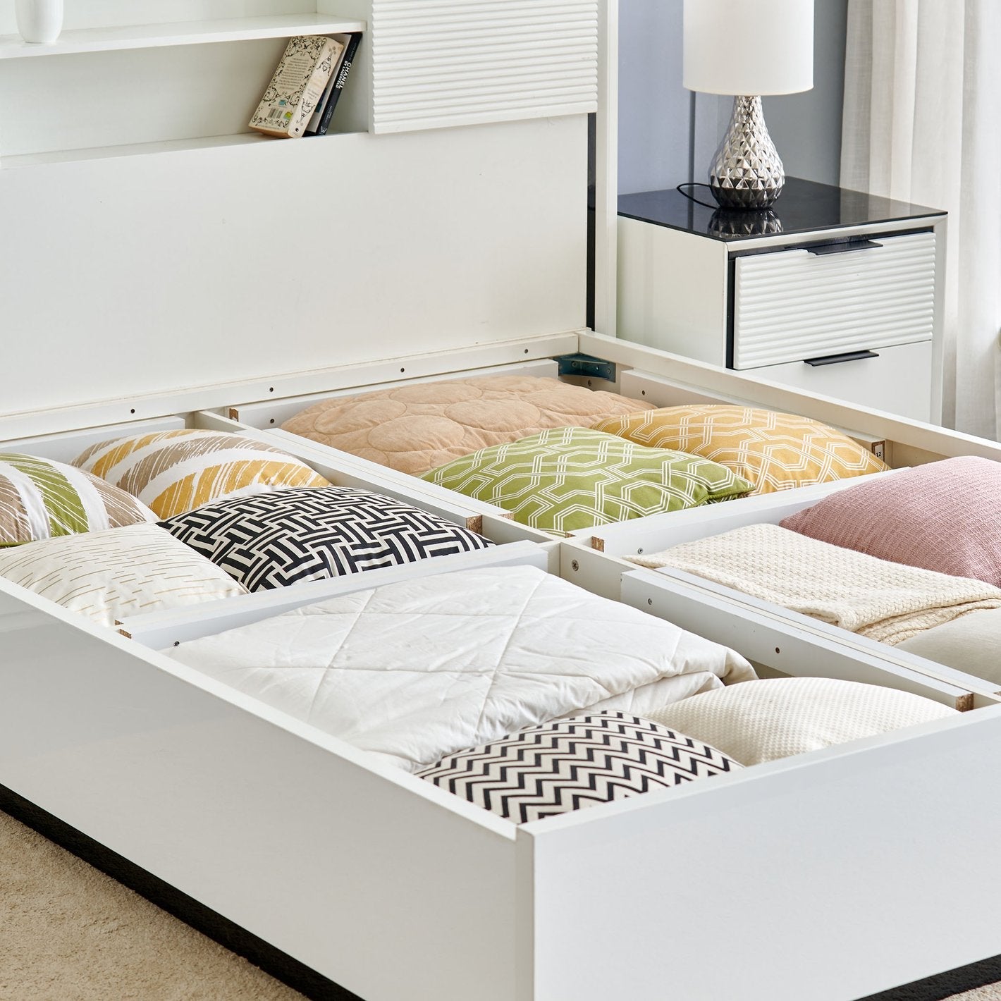 Ample Box Storage beneath the mattress base—ideal for storing extra bedding, seasonal clothing, or personal items.