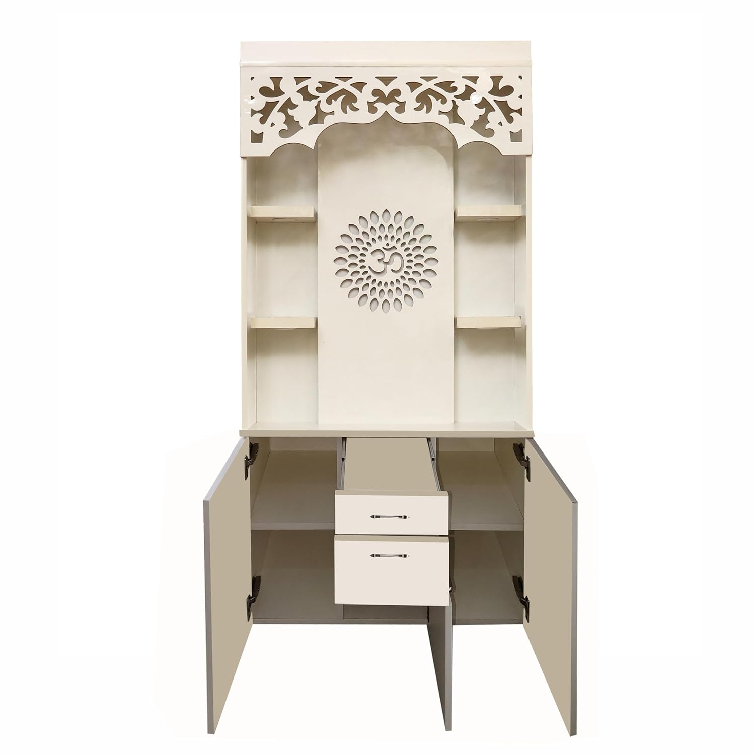 Ample Storage: Multiple drawers and cabinets provide organized space for incense sticks, holy books, diya, and other puja essentials.