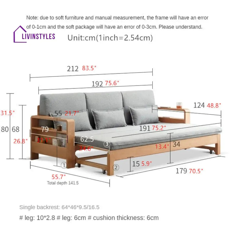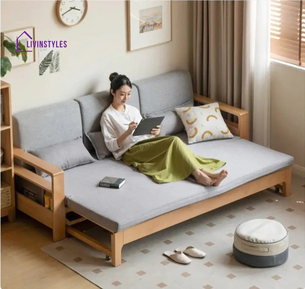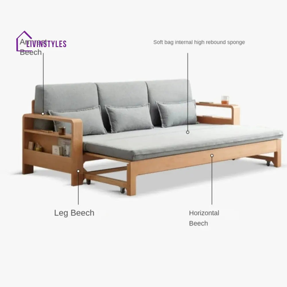 Rayan Solid Wood Sofa Come Bed for Living Room