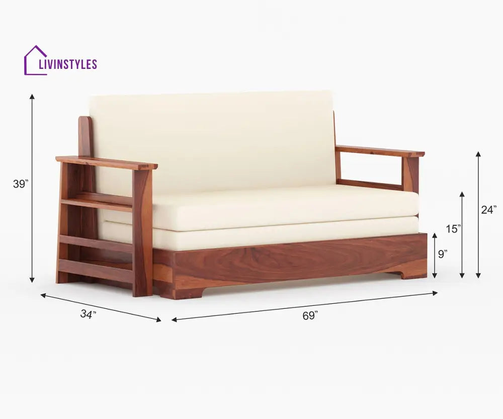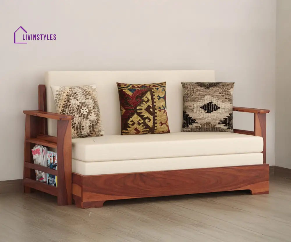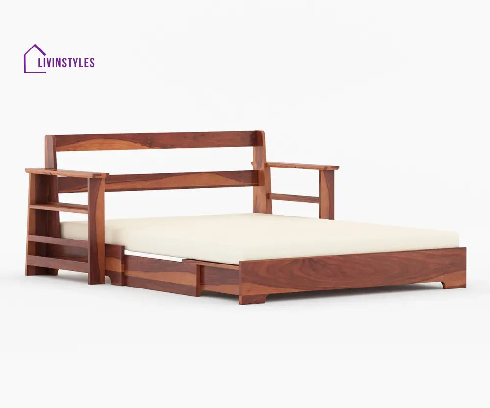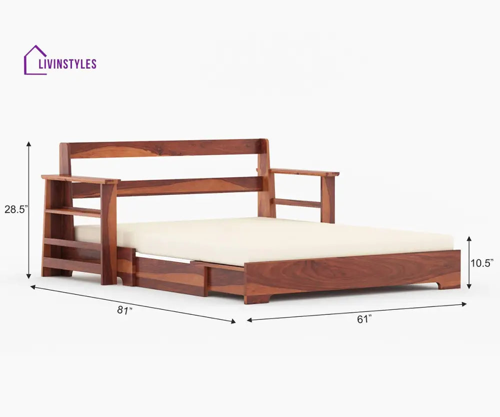 Rodion Solid Wood Sheesham Sofa Cum Bed | Solid Wood Sofa Come Bed (Honey Finish)