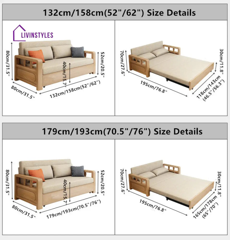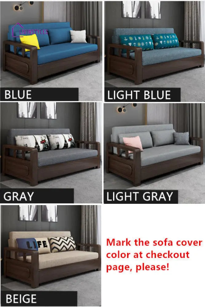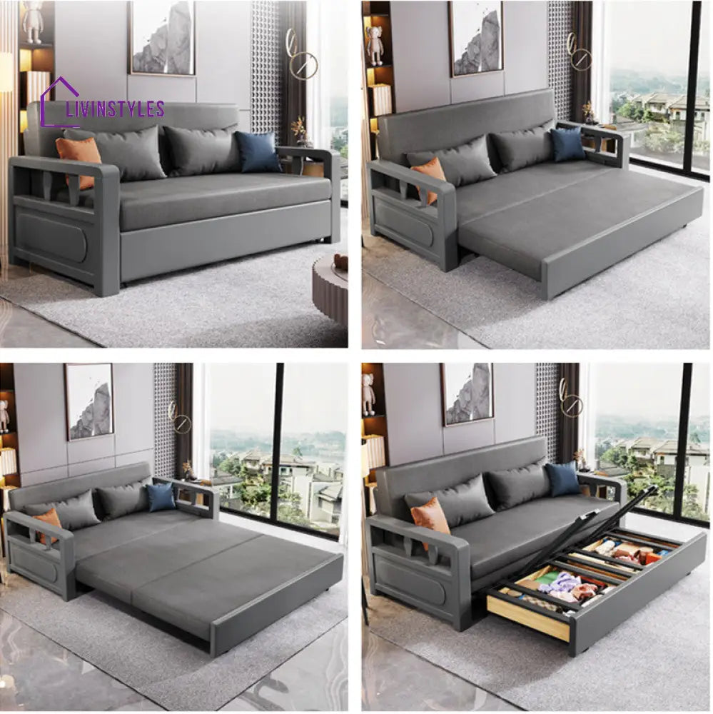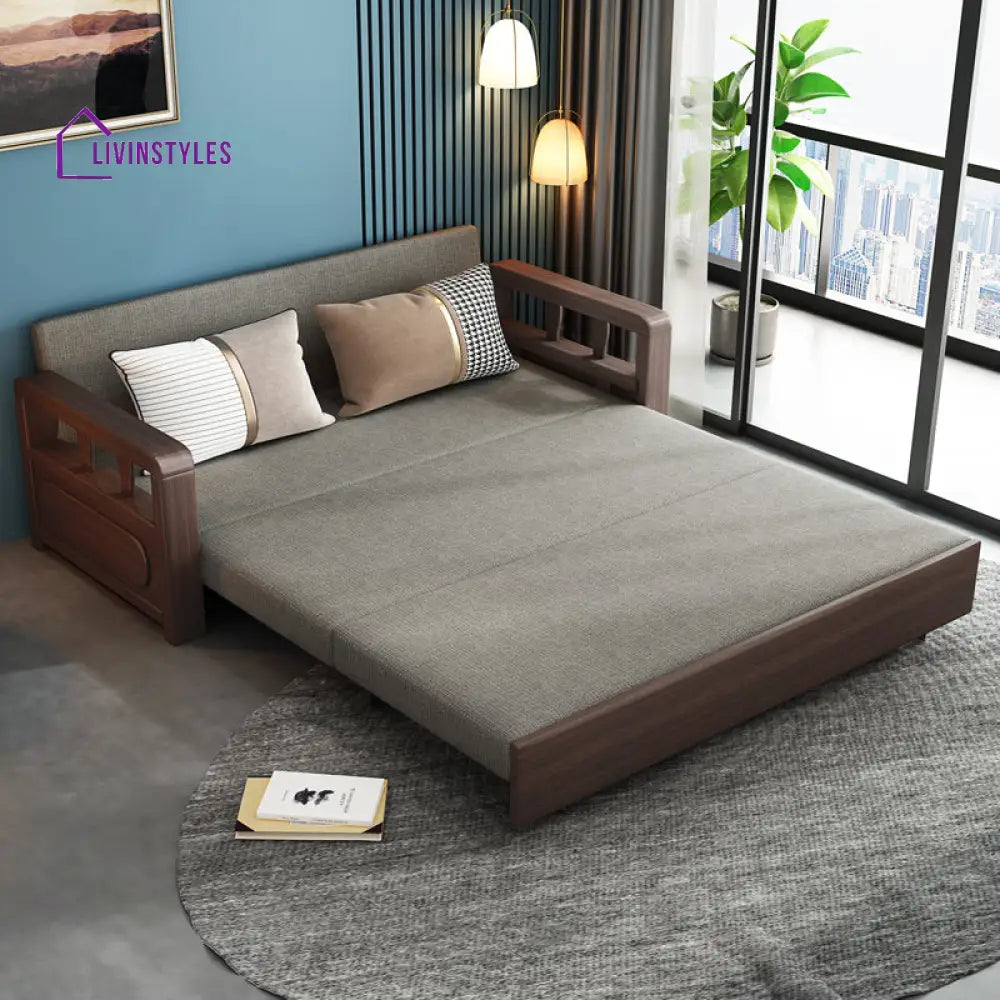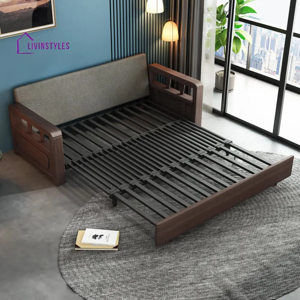 Shalini Modern Solid Wood Convertible Sofa Come Bed With Underneath Storage