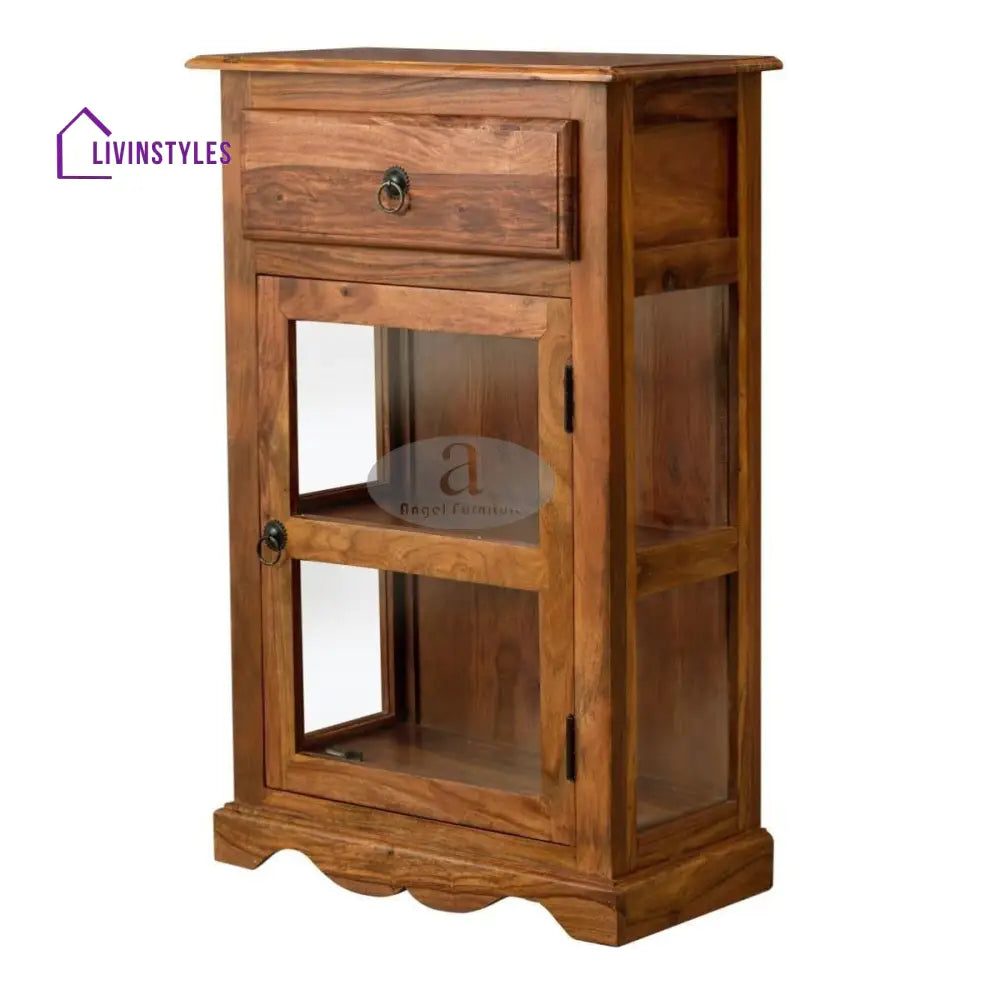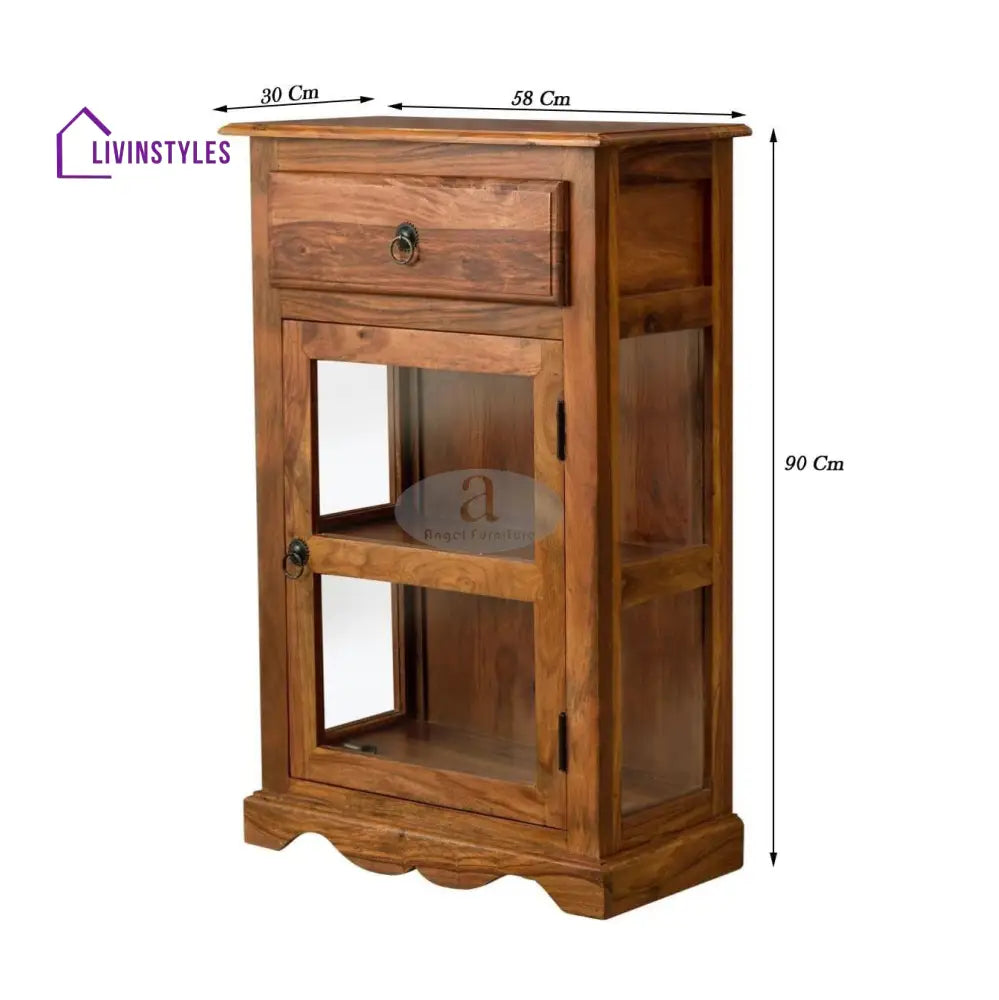 Sheesham Wood One Drawer Crockery Cabinet Small In Honey Finish