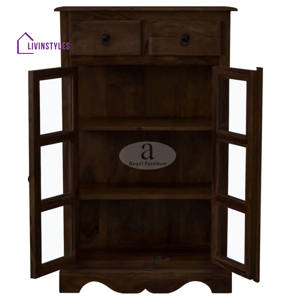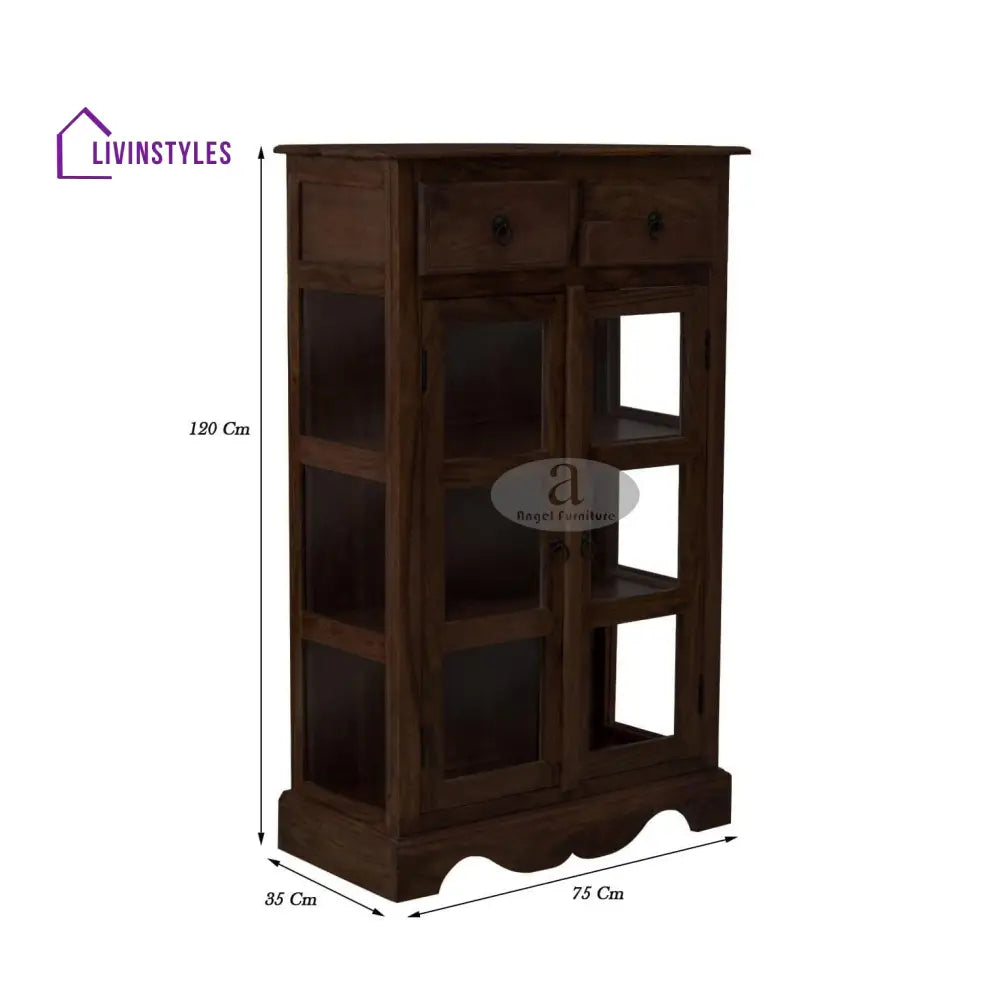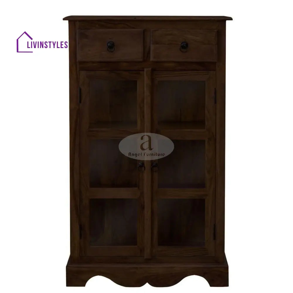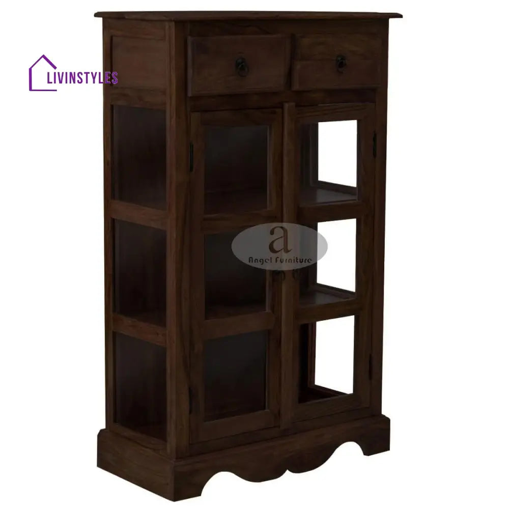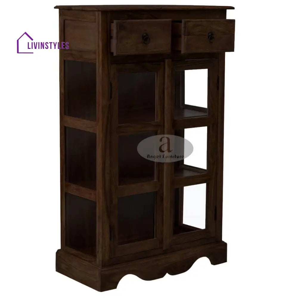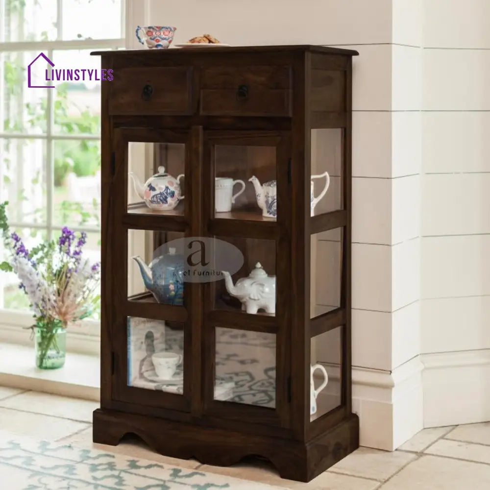 Sheesham Wood One Drawer Crockery Cabinet Small In Walnut Finish