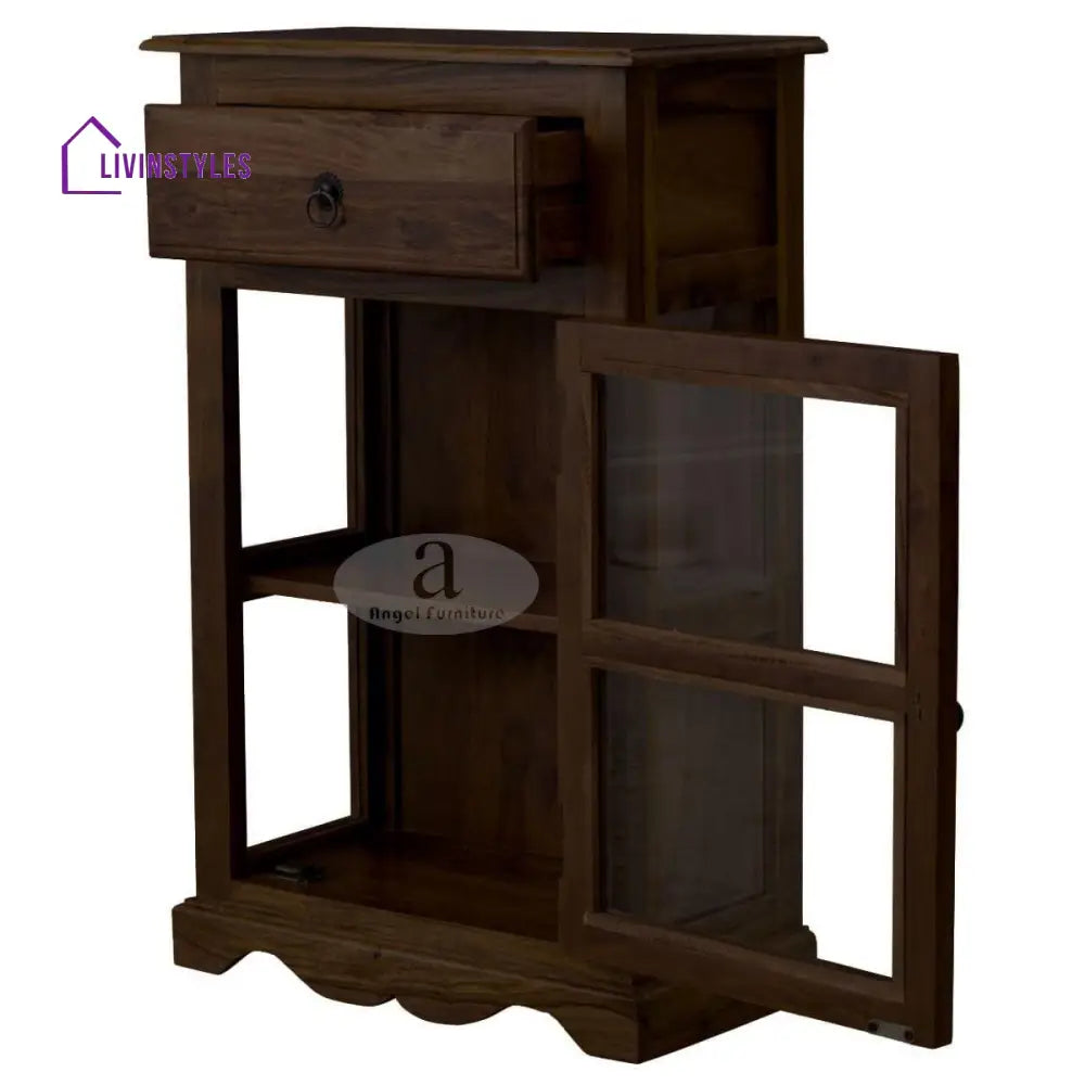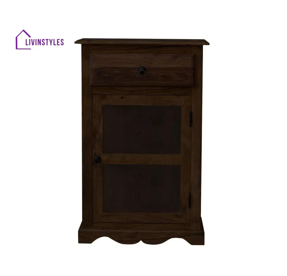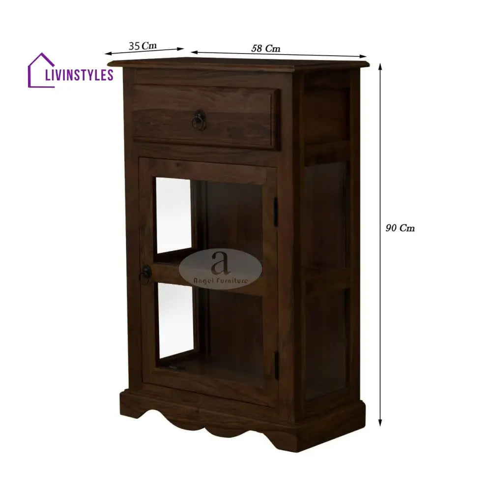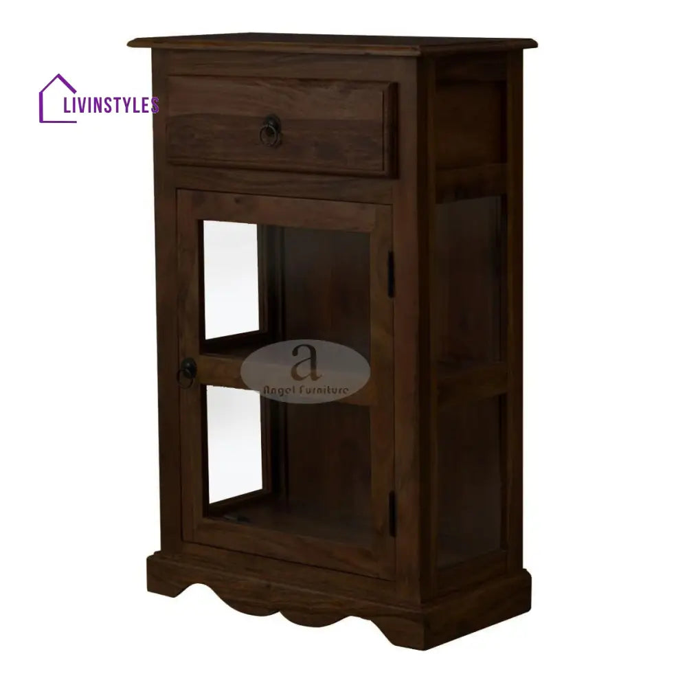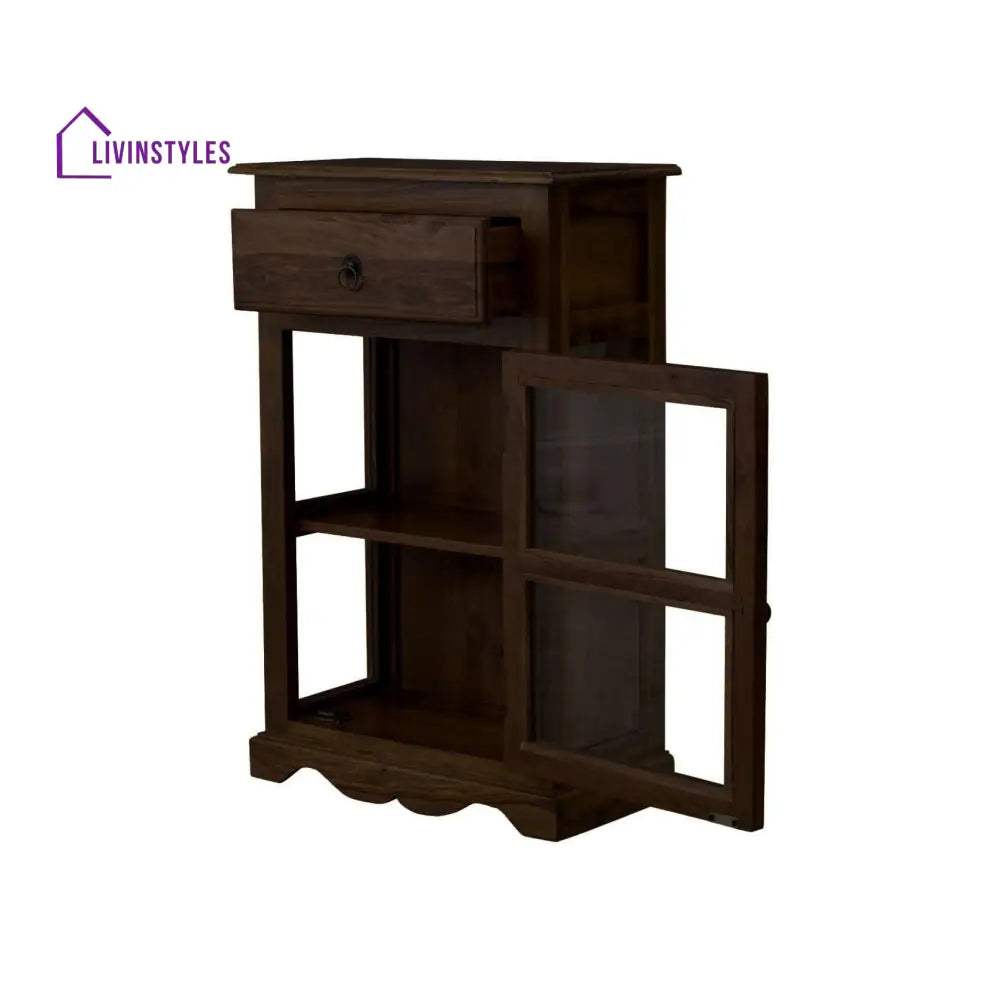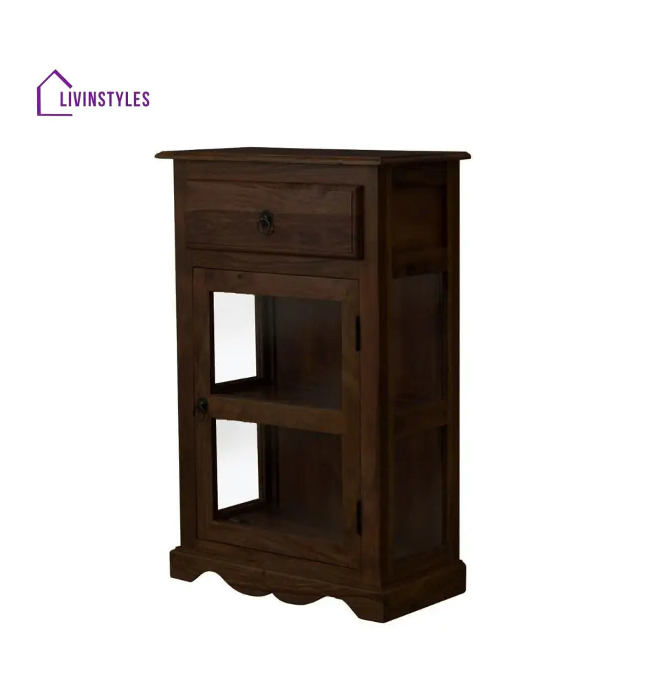 Sheesham Wood One Drawer Crockery Cabinet Small In Walnut Finish