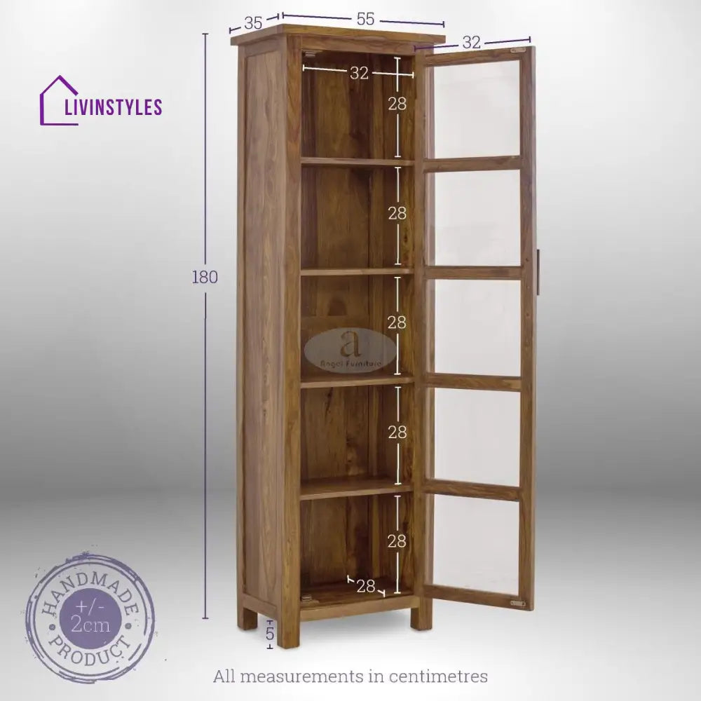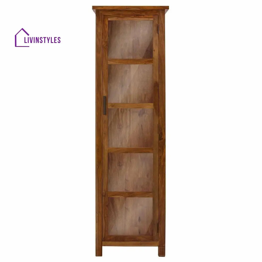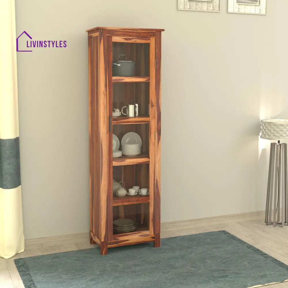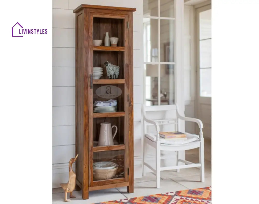 Sheesham Wood Single Door Crockery Cabinet Tall In Walnut Finish