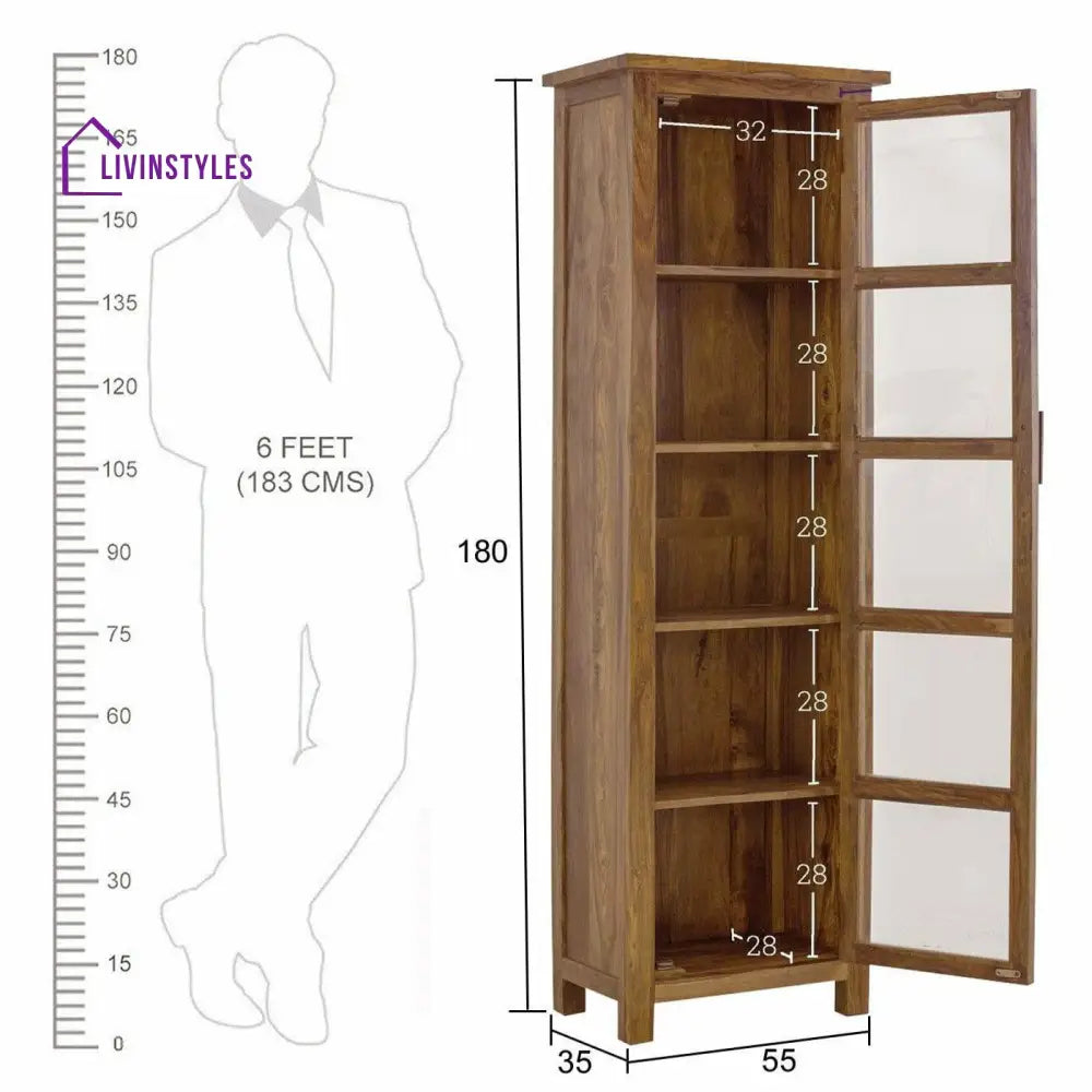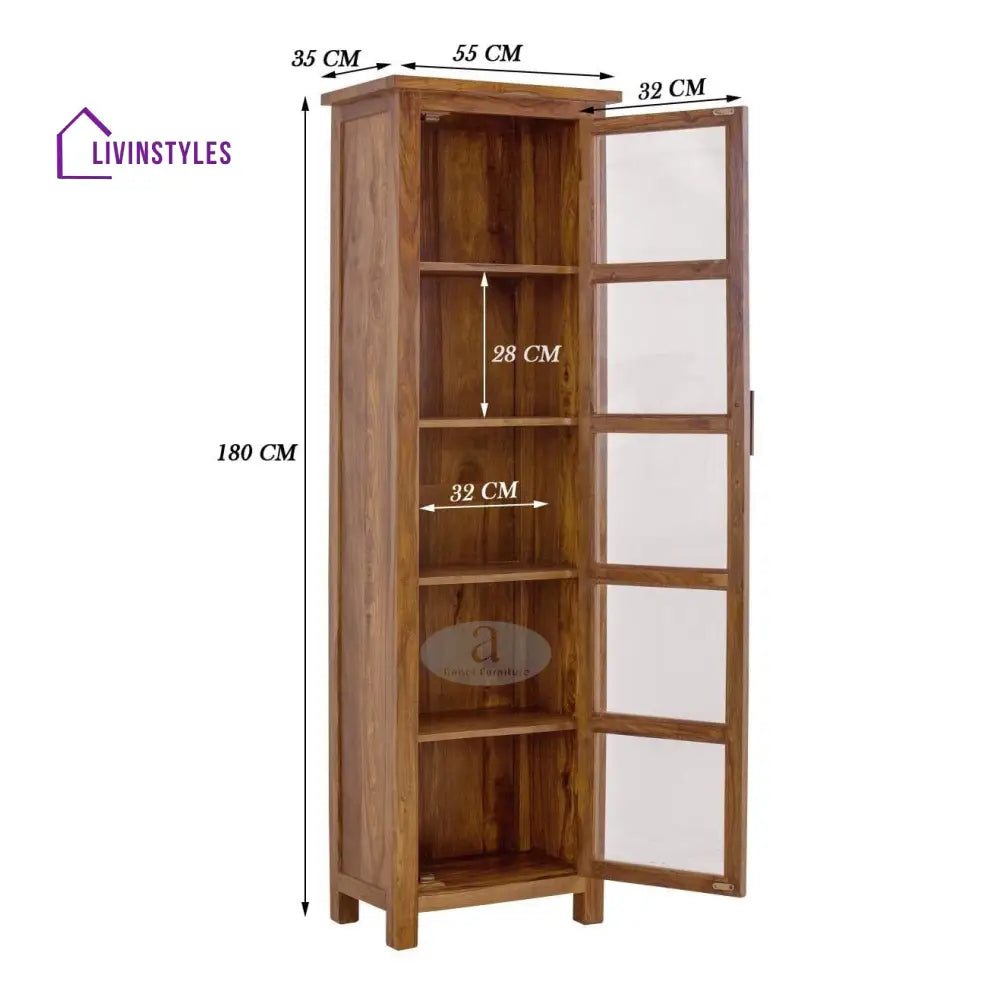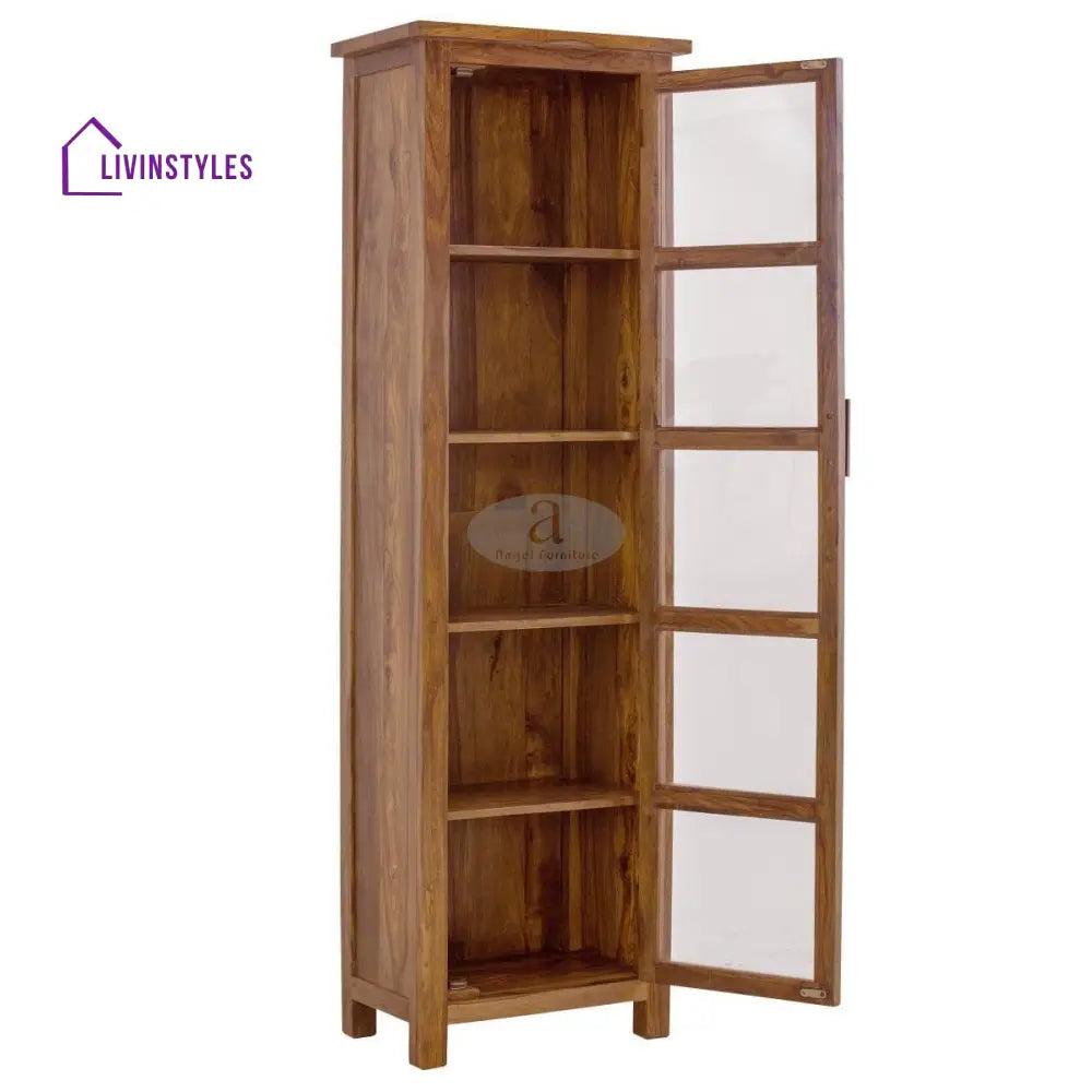 Sheesham Wood Single Door Crockery Cabinet Tall In Walnut Finish