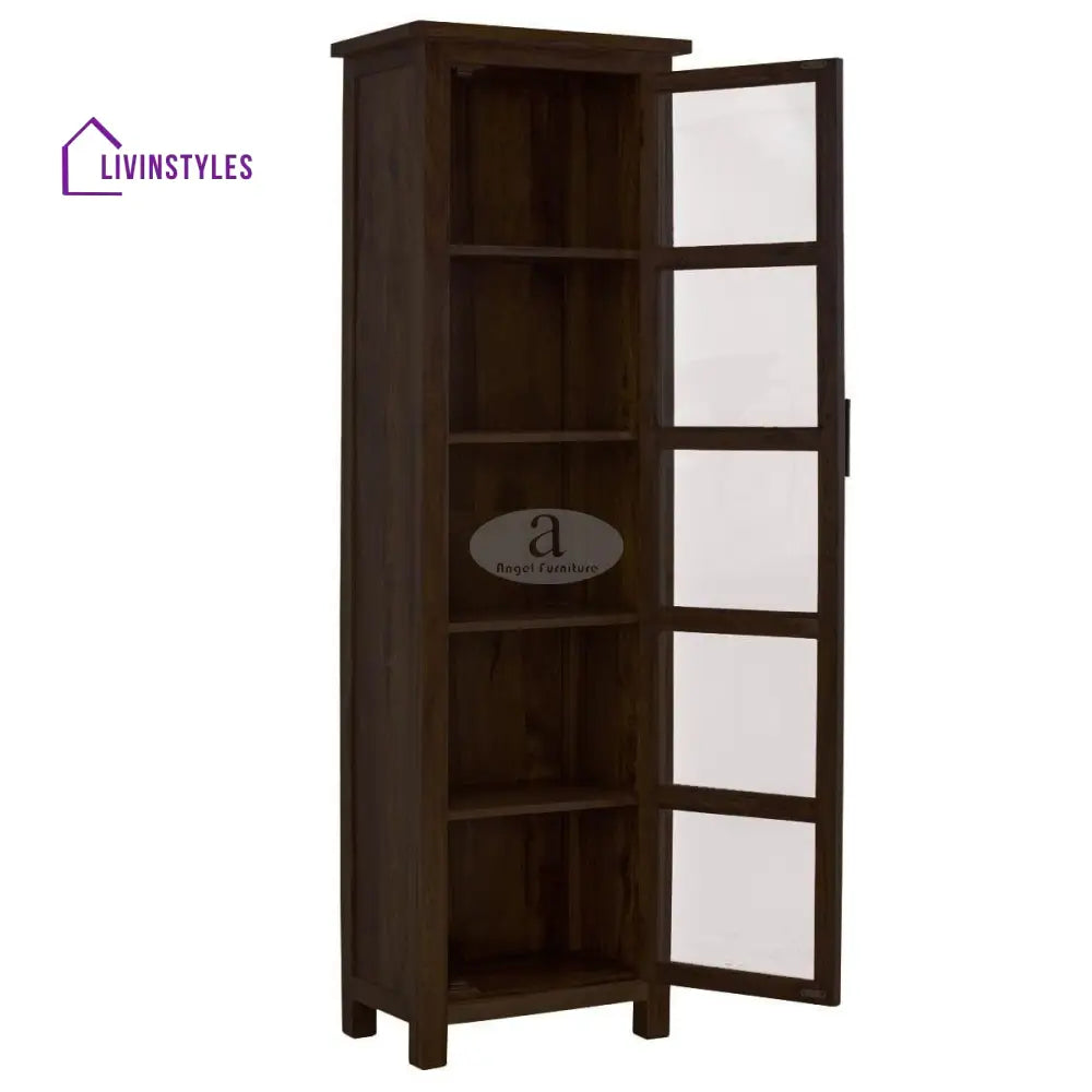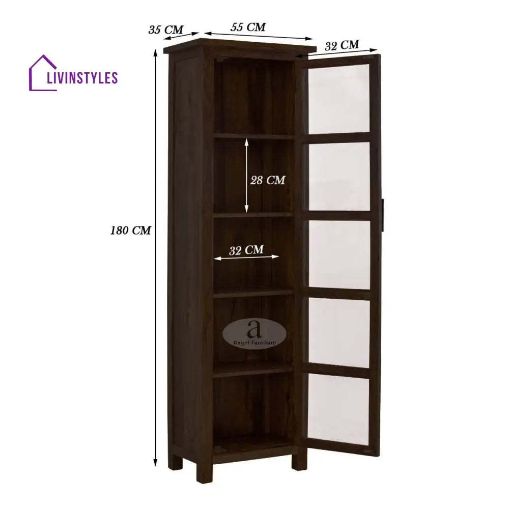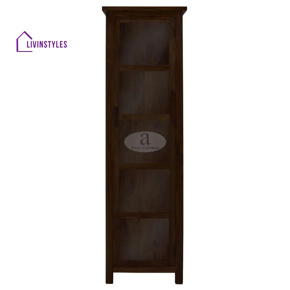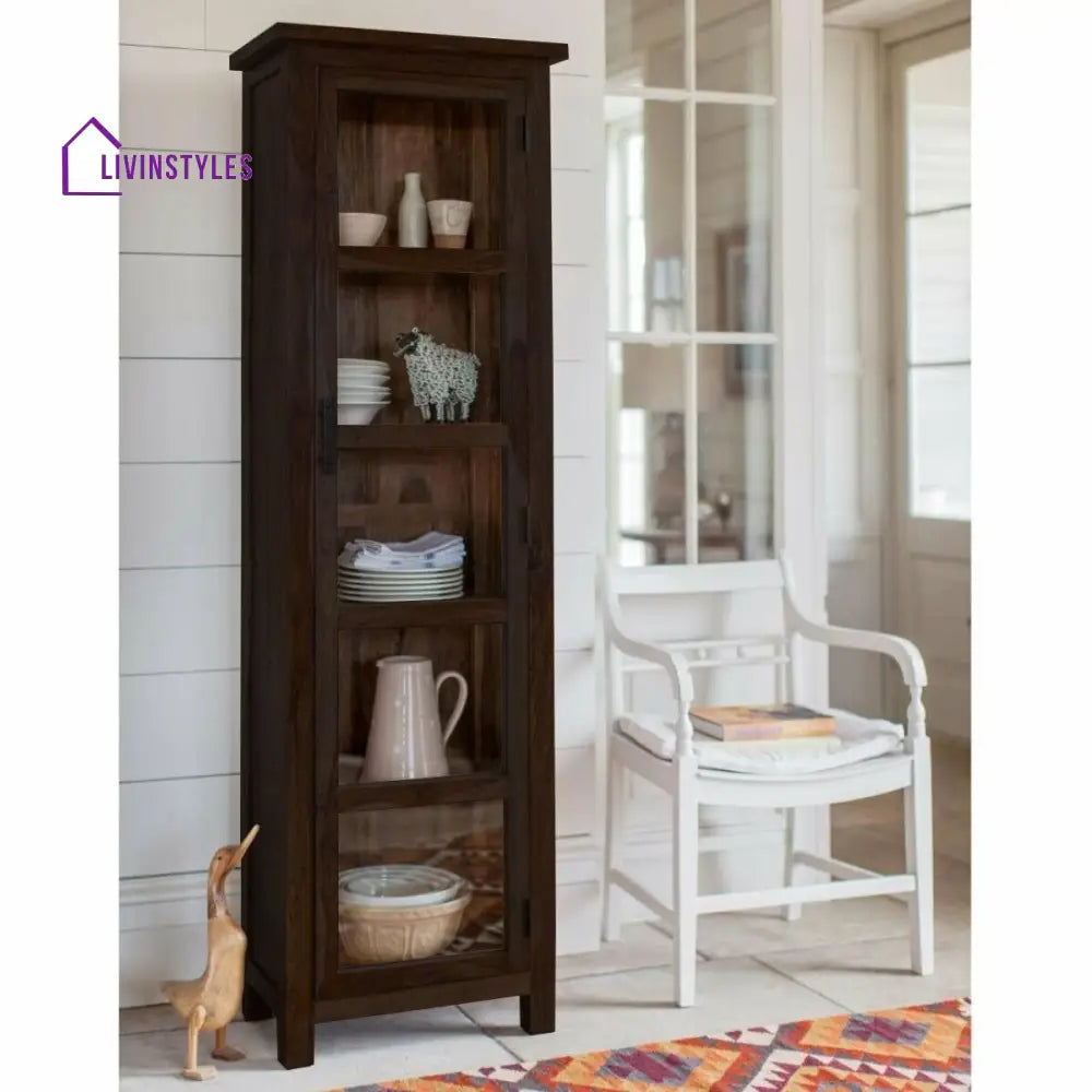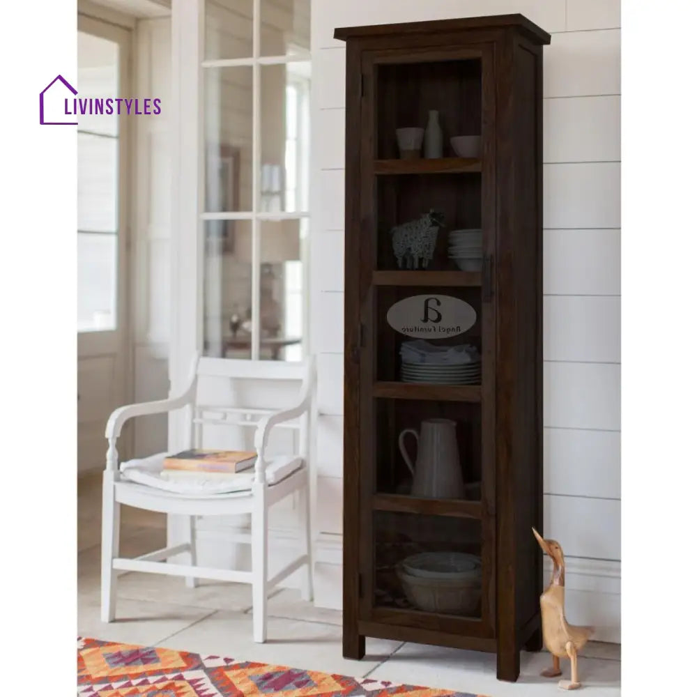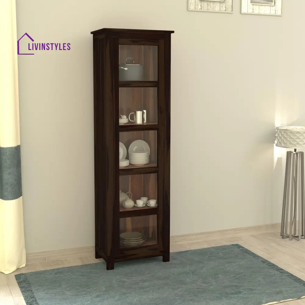 Sheesham Wood Single Door Crockery Cabinet Tall In Walnut Finish