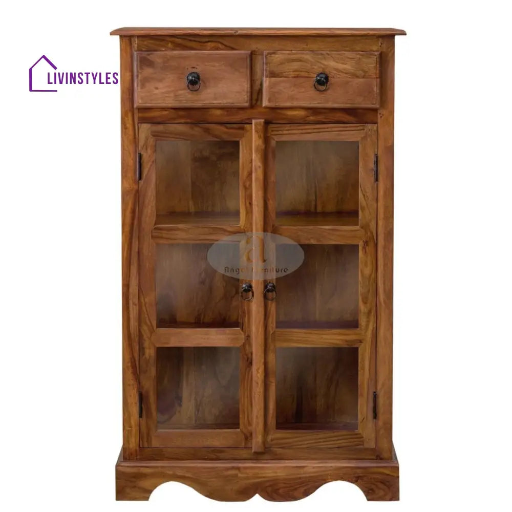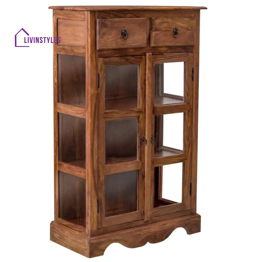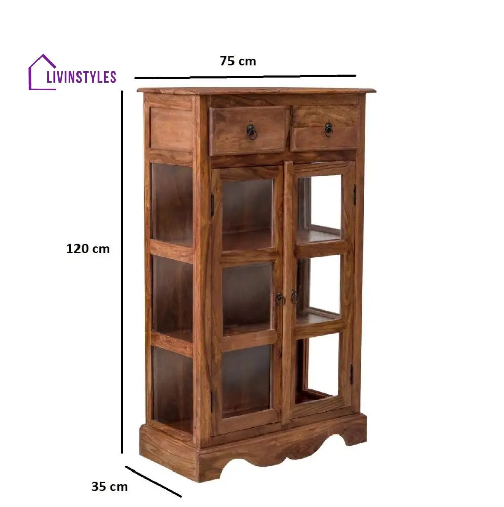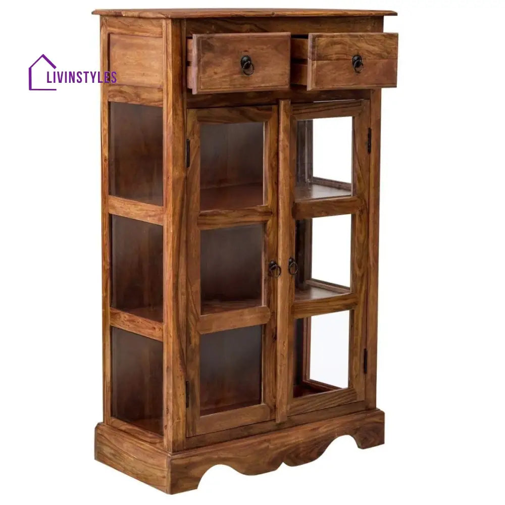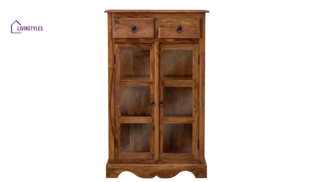 Sheesham Wood Two Drawer Crockery Cabinet Medium In Honey Finish