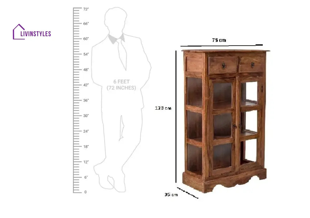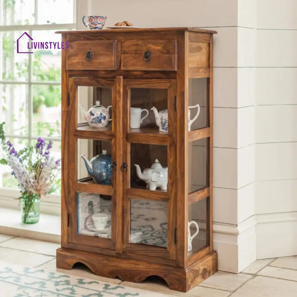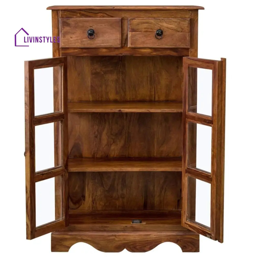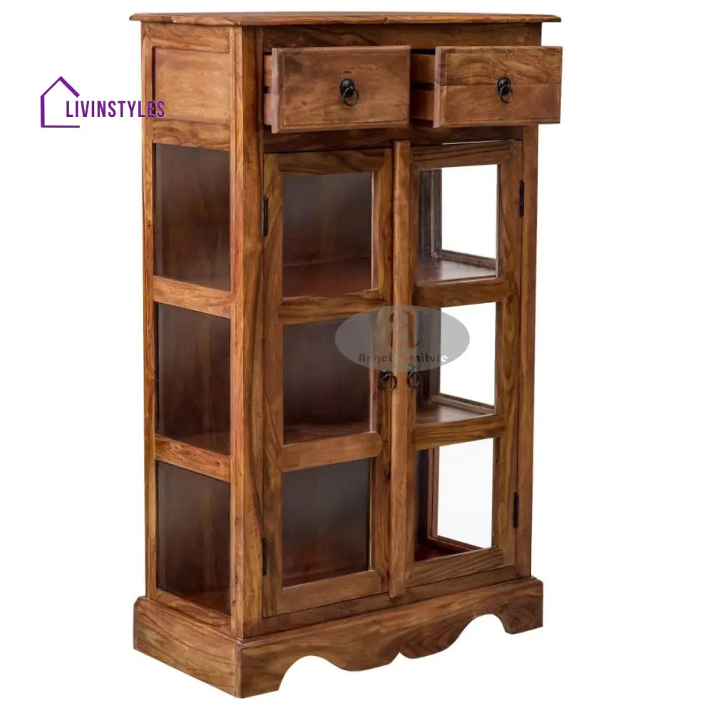 Sheesham Wood Two Drawer Crockery Cabinet Medium In Honey Finish