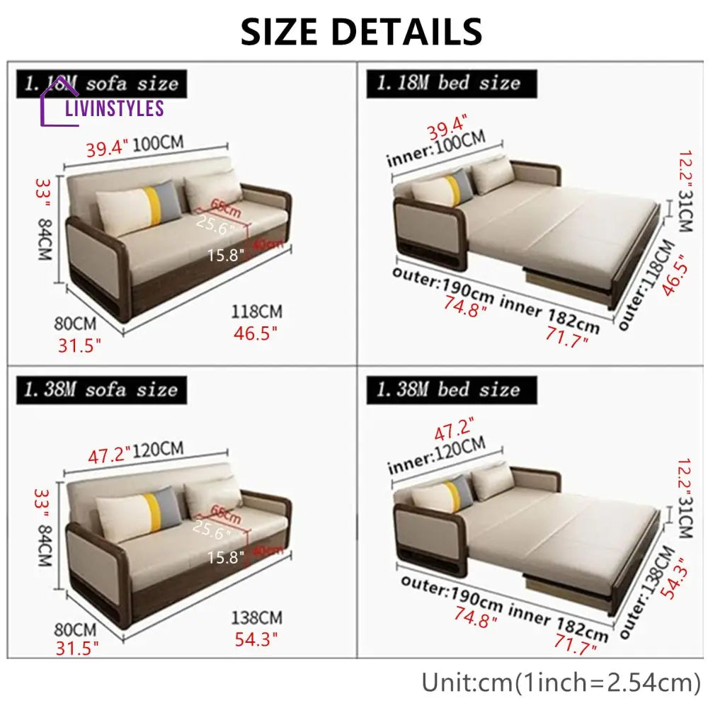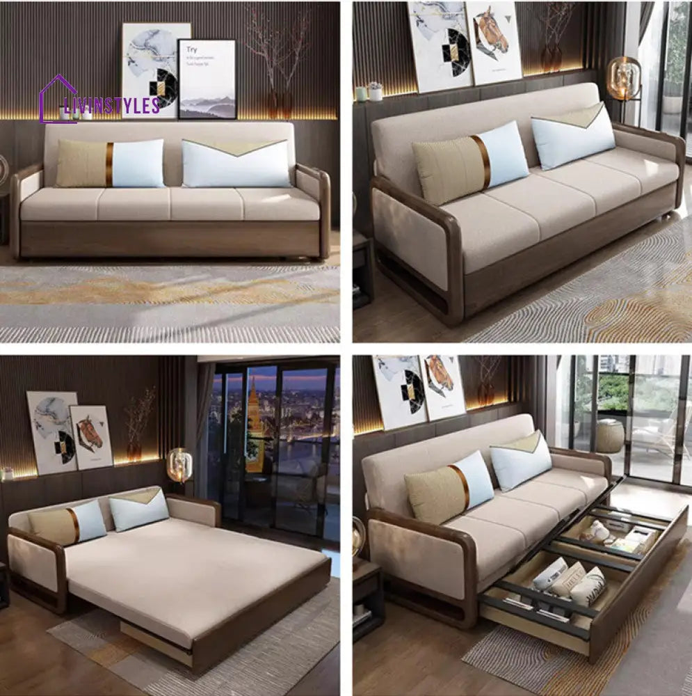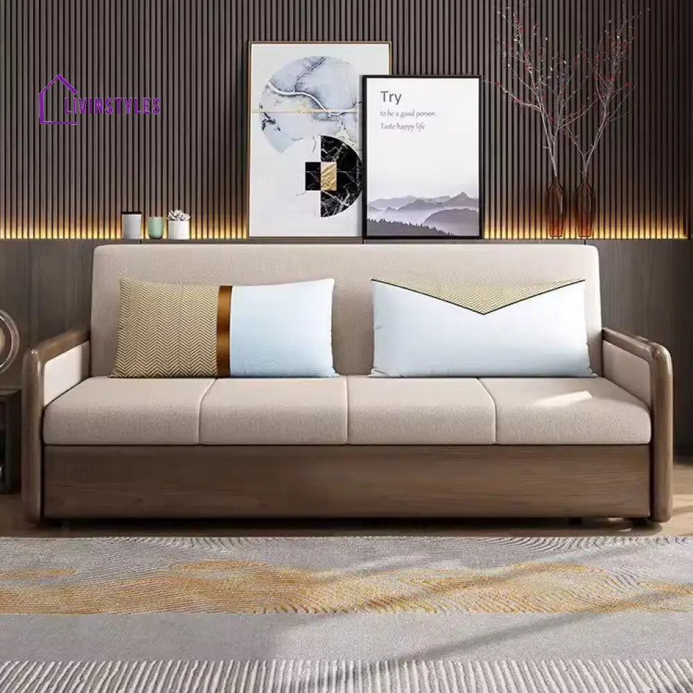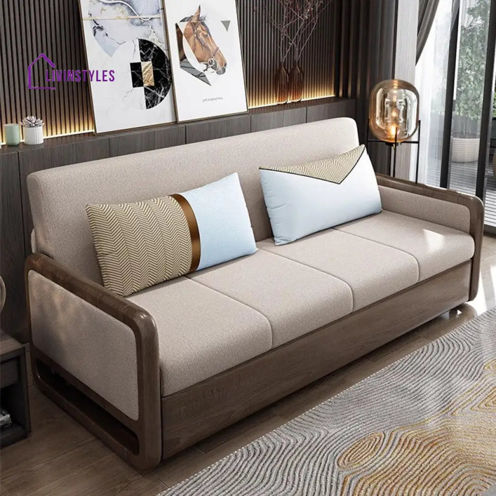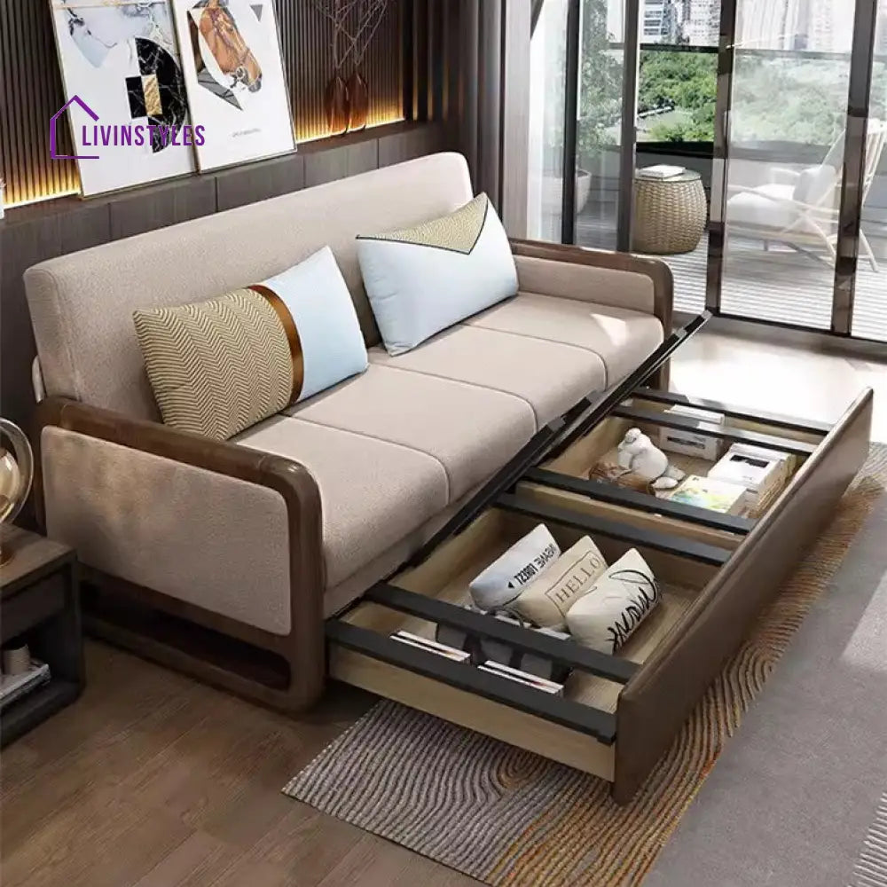 Willems Solid Wood Armrest Sofa Come Bed With Underneath Storage