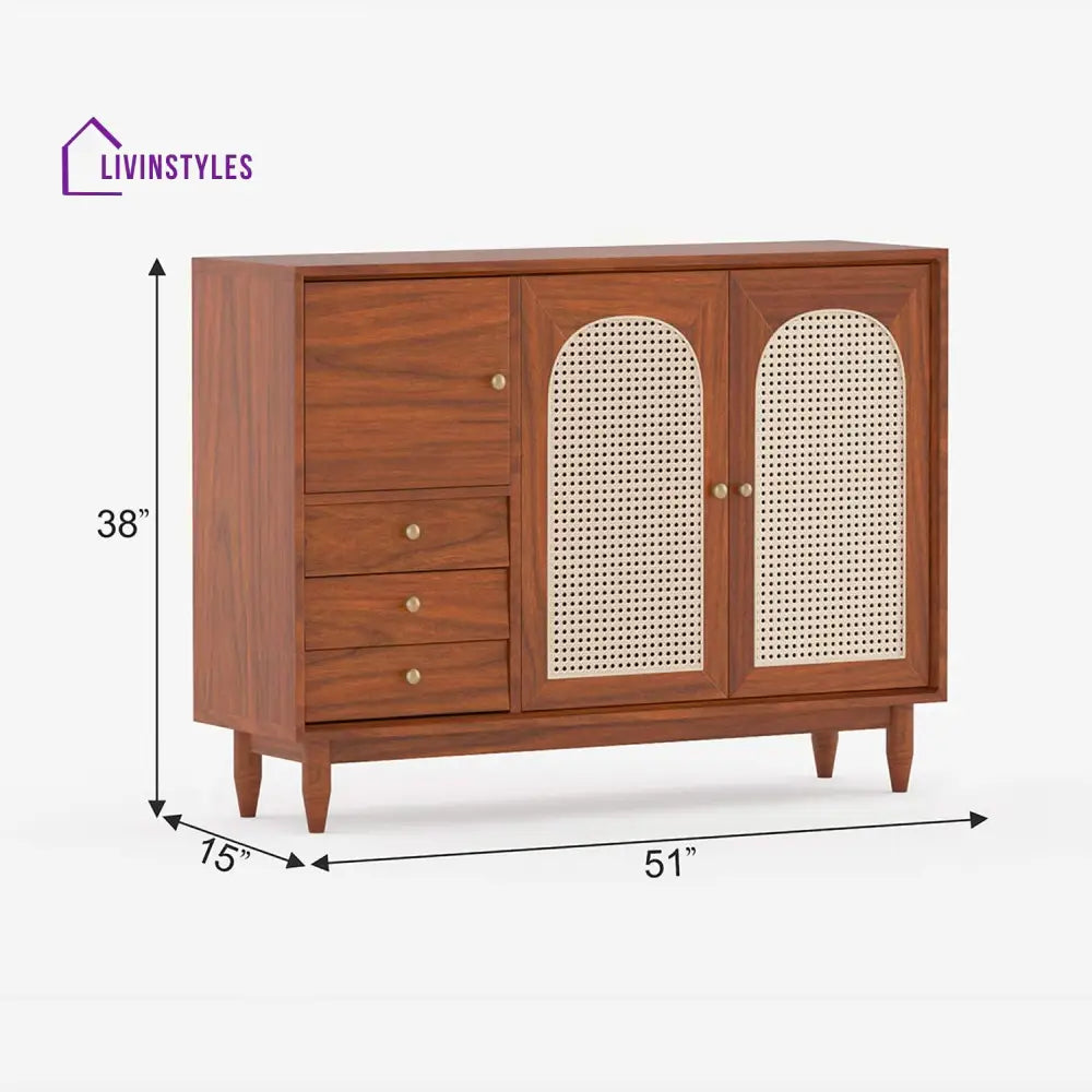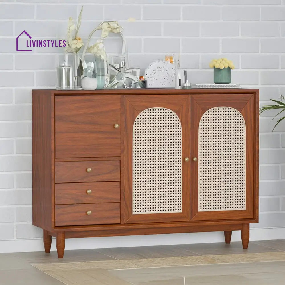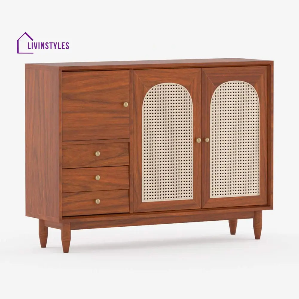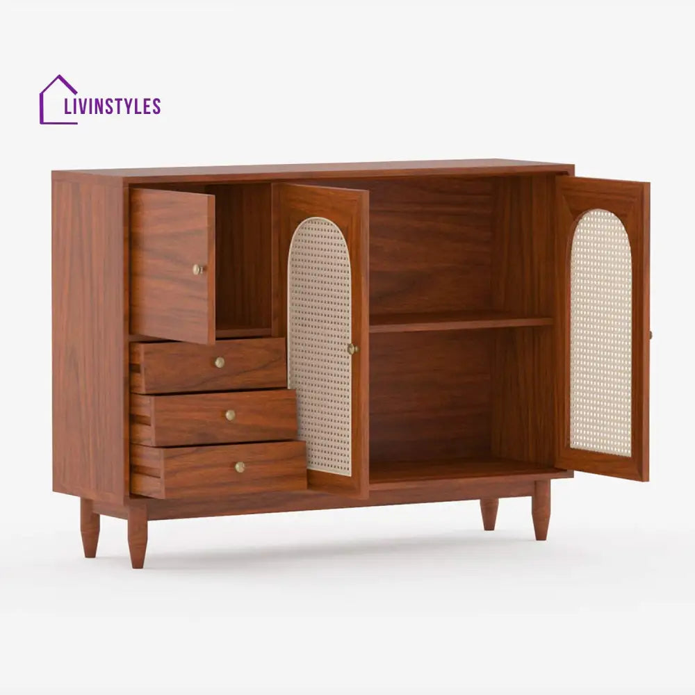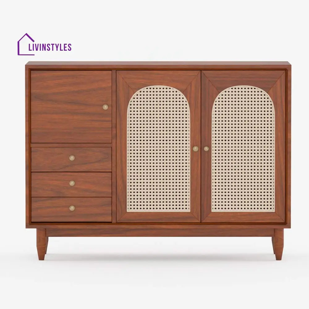 Taras Solid Wood Acacia Cane Cabinet and Sideboard (Honey Finish)