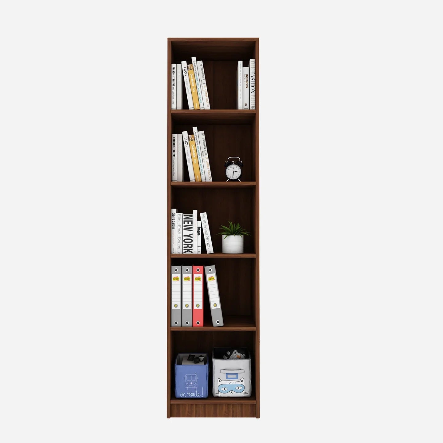 Elegant, space-saving, and thoughtfully designed — the Vistaar Slim Wooden Bookcase by OmkarWood Furniture’s is the perfect solution for compact spaces that need a stylish storage upgrade. Crafted from high-quality engineered wood with a rich walnut finish, this vertical bookcase brings sophistication and functionality to your home or office.