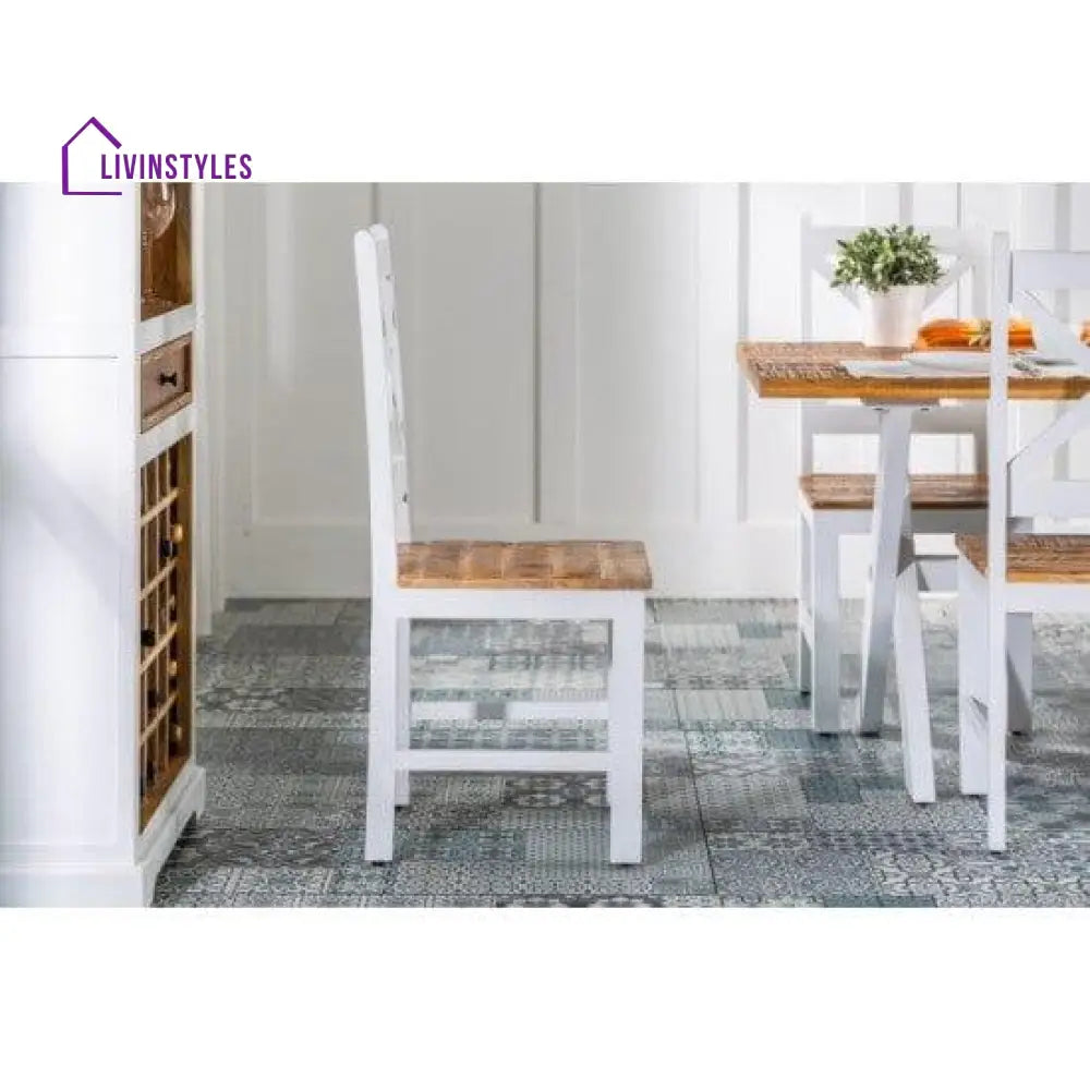 Introducing the dining chair set of 2, crafted from high-quality mango wood. These chairs are designed to elevate your dining experience with their unique combination of natural and white finishes. Featuring a rustic charm with a rough mango wood finish, these chairs offer both style and functionality. The natural finish on the top combined with the white and natural color combination at the bottom provides a distinctive look that enhances the aesthetic of any dining room.