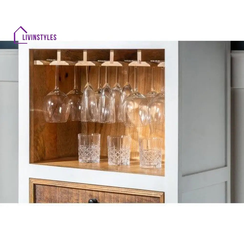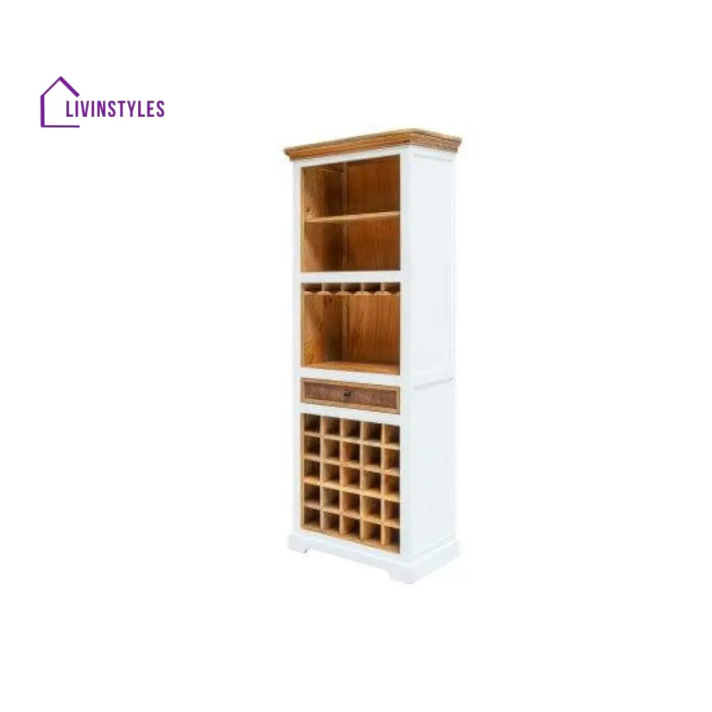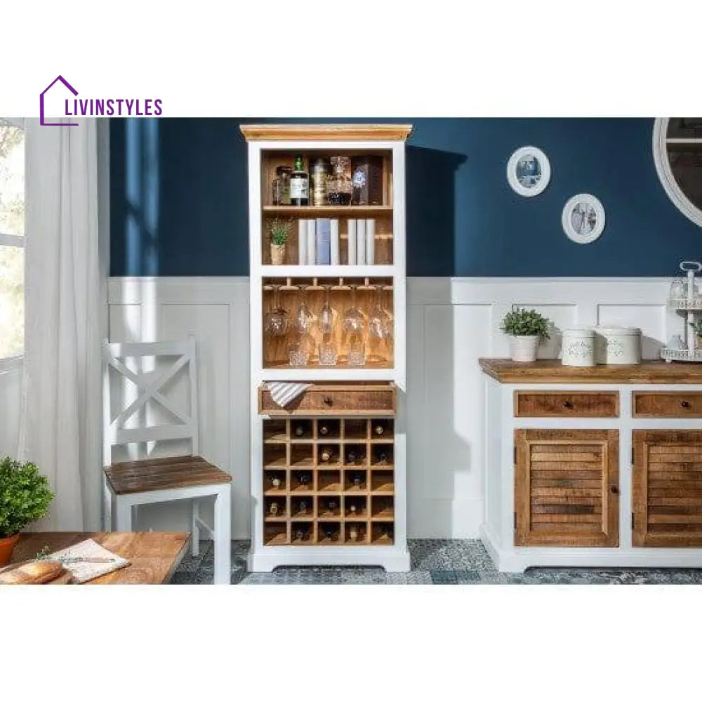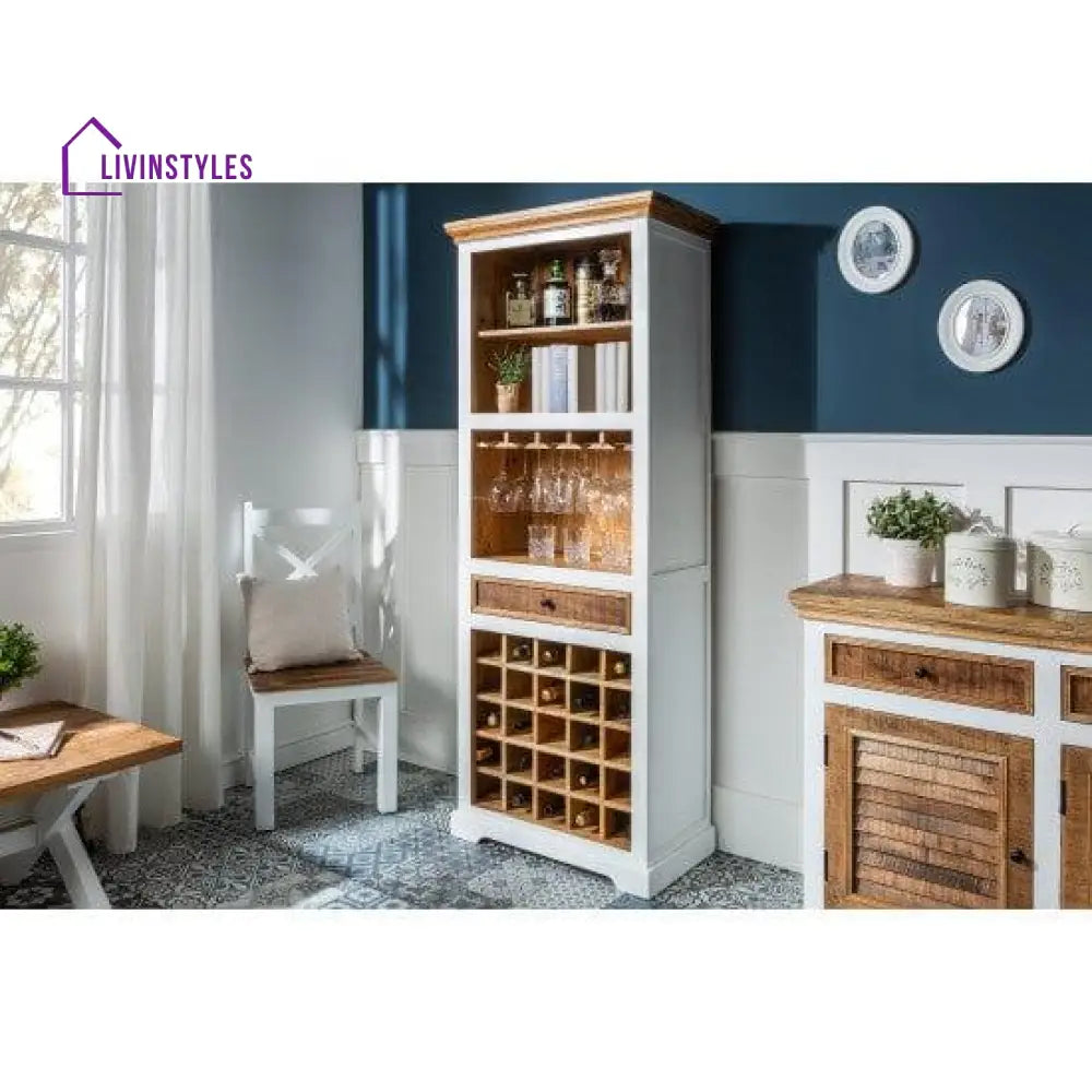 Introducing our Exquisite Wooden Wine Rack, designed to offer both style and functionality for your home. Crafted from premium mango wood, this wine rack is a perfect blend of rustic charm and elegant storage. Whether you're an avid wine enthusiast or someone who loves to entertain, this wine rack provides a sophisticated way to store and display your collection of wines and glasses.The dimensions of 72 cm (L) x 45 cm (D) x 196 cm (H) ensure that the wine rack offers ample space to store your bottles and glasses securely while keeping everything organized. The white exterior with a natural mango wood interior gives it a chic, contemporary look, making it a stunning addition to your living room, dining area, or home bar. The rough mango touch finish imparts a rustic feel, adding warmth and character to your space.This wine rack features bottle holders to store your wine bottles safely and glass holders to display your wine glasses stylishly. Whether you're organizing for a special occasion or everyday use, this rack will keep your wine collection within easy reach, while adding an elegant touch to your décor.