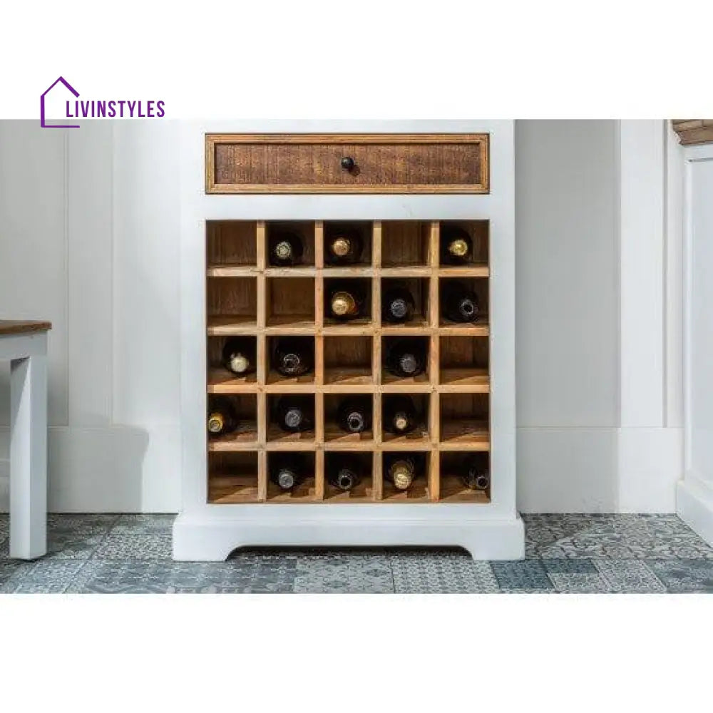 A3: The wine rack features a modern design with a white exterior that complements its natural mango wood interior. The rough mango touch finish gives it a rustic charm, making it versatile for both contemporary and vintage-inspired interiors.