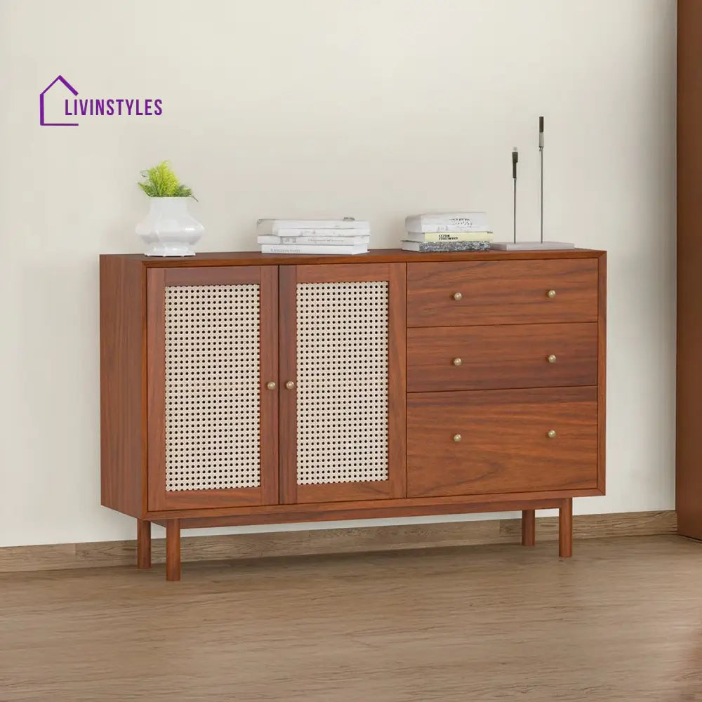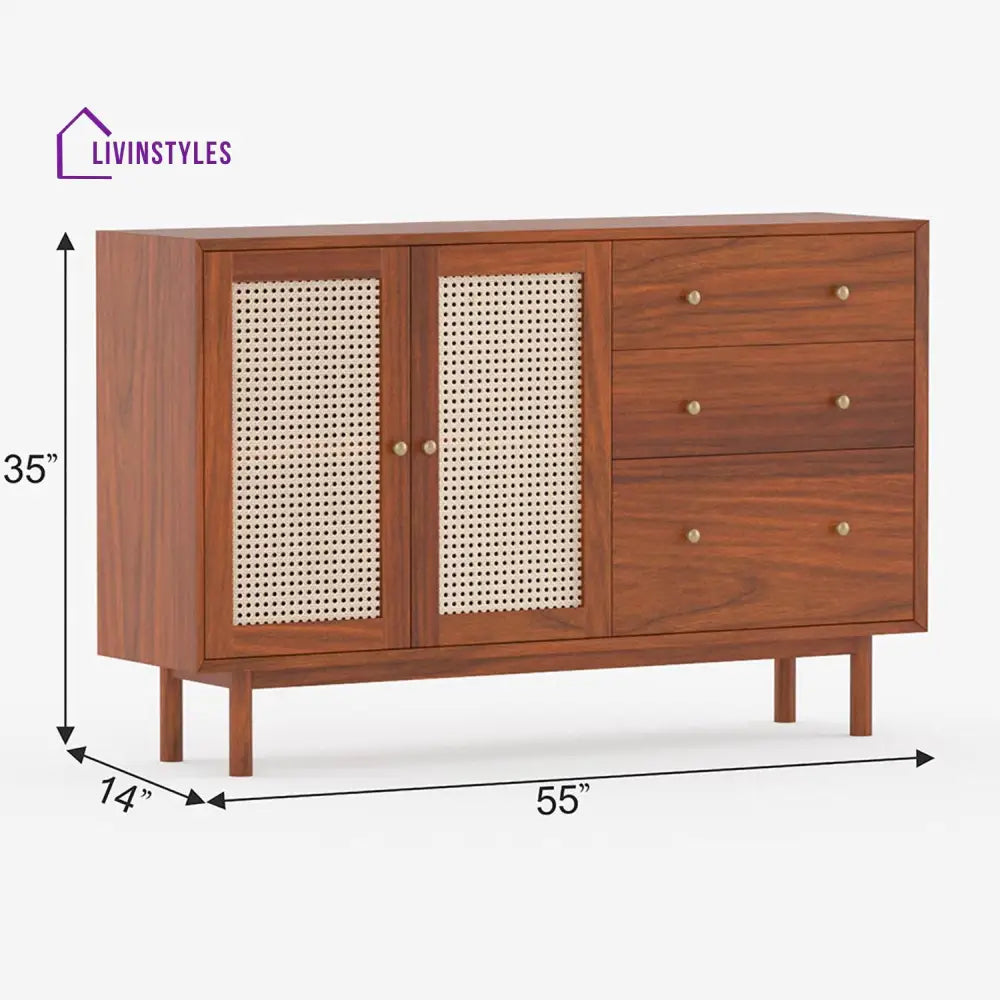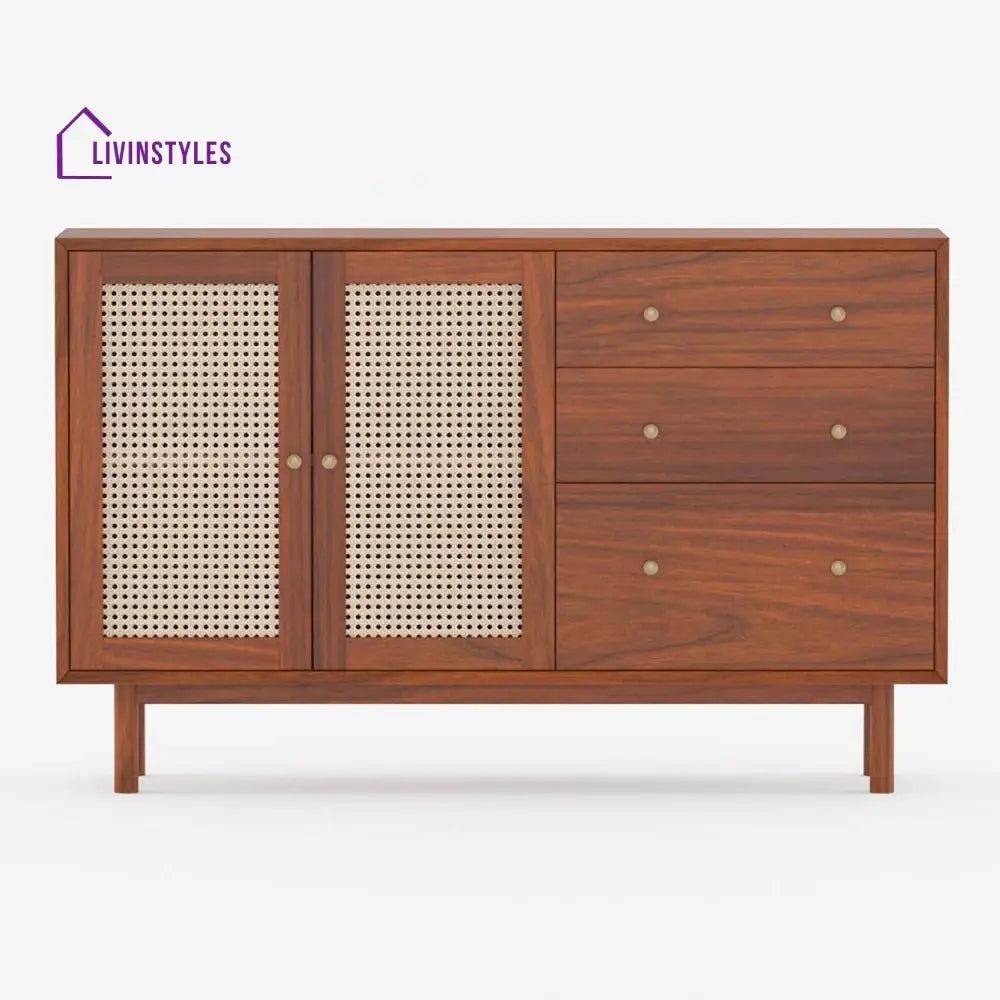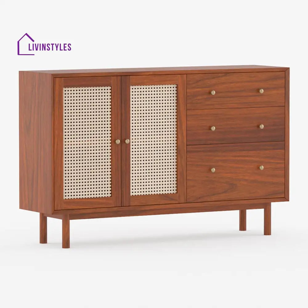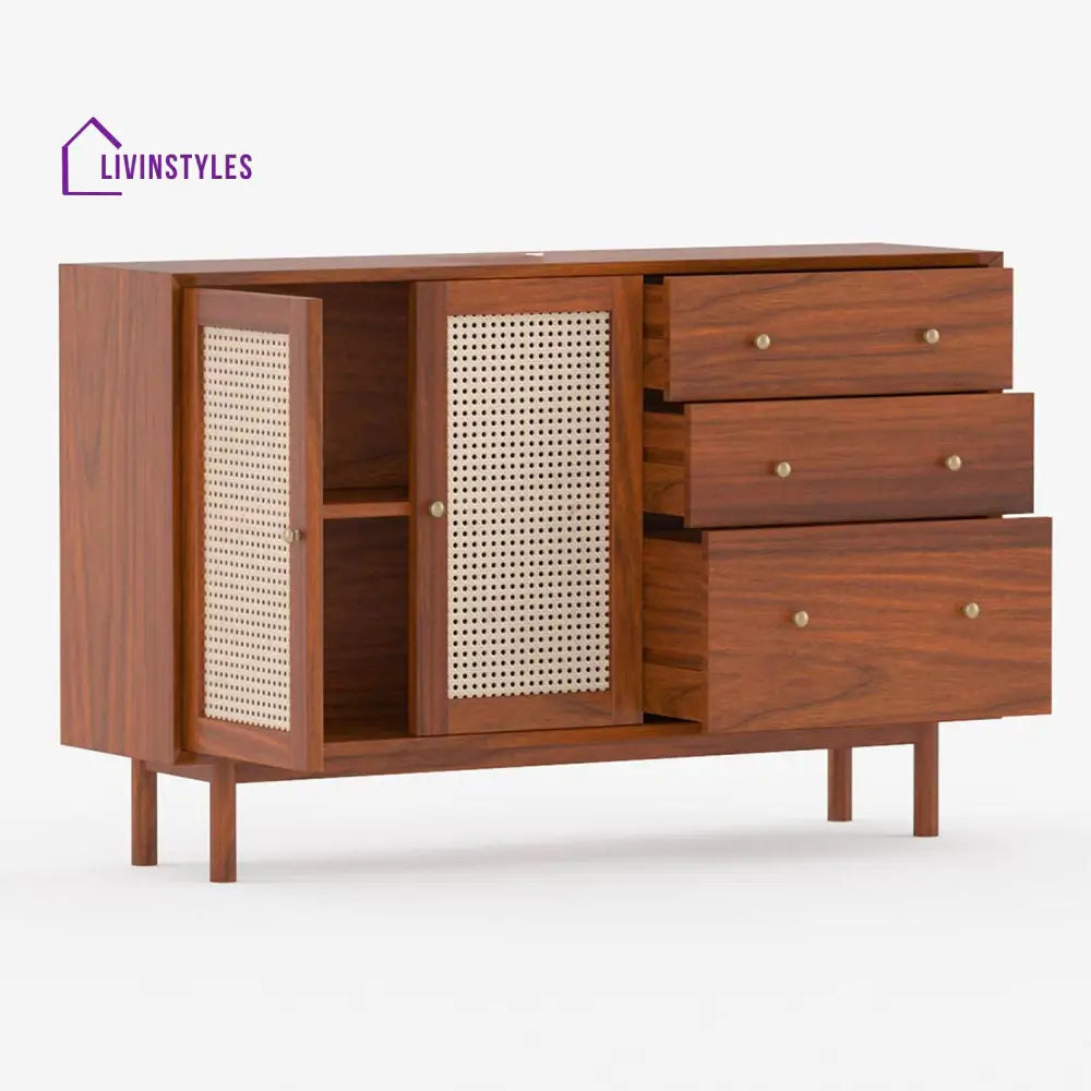 Zahar Solid Wood Acacia Cane Cabinet and Sideboard (Honey Finish)