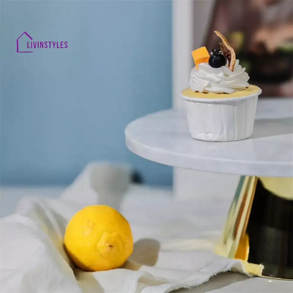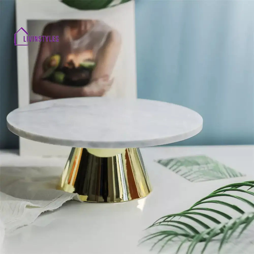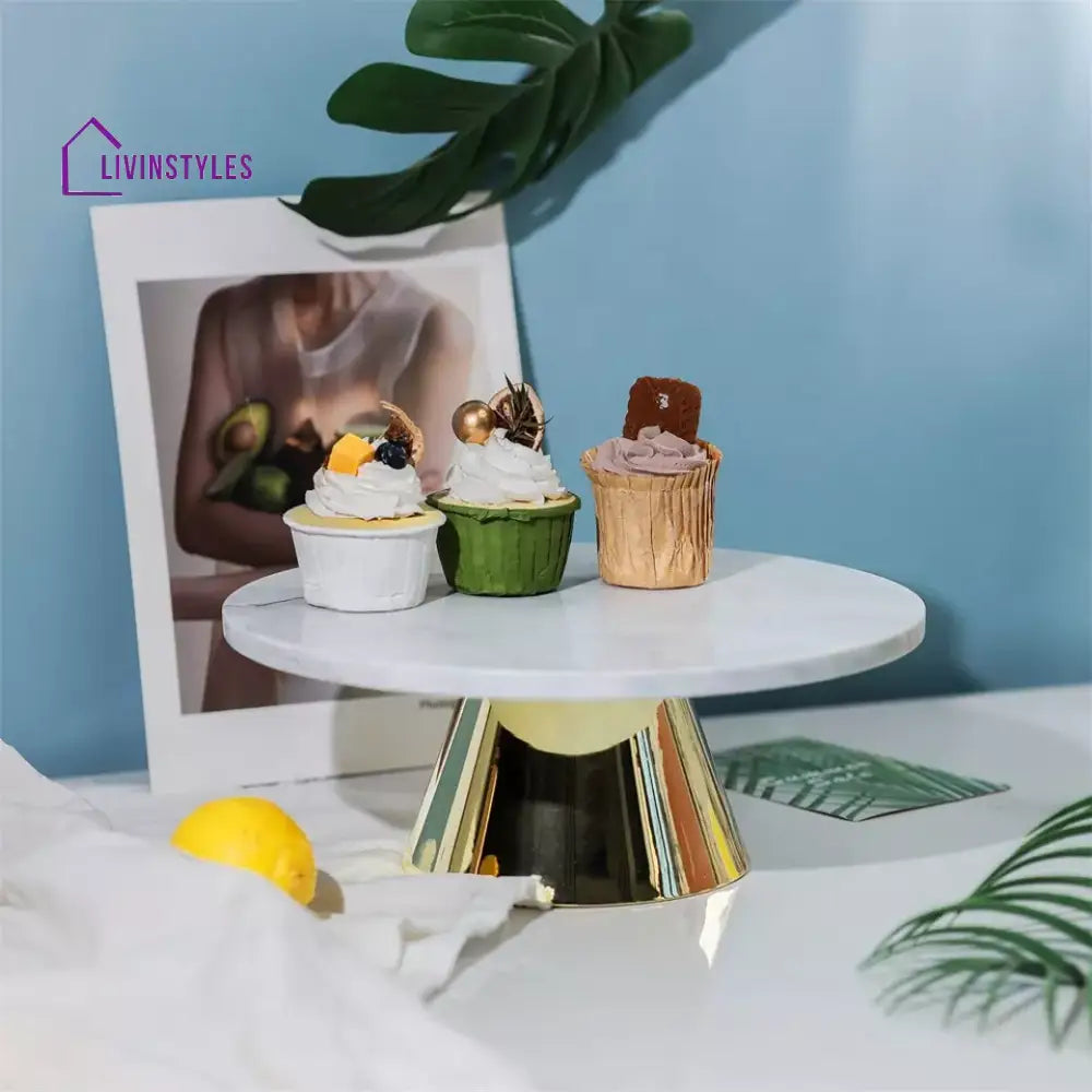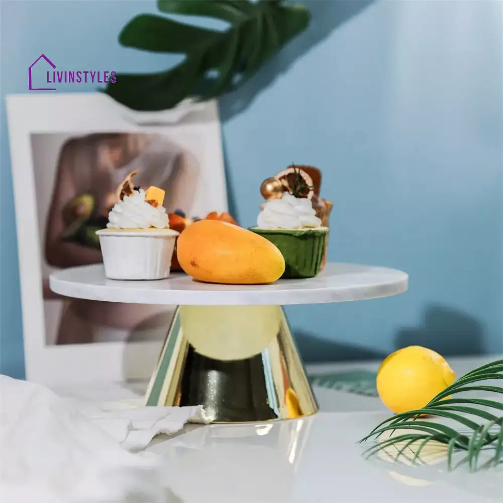 Eos Marble Cake Stand in Gold Color