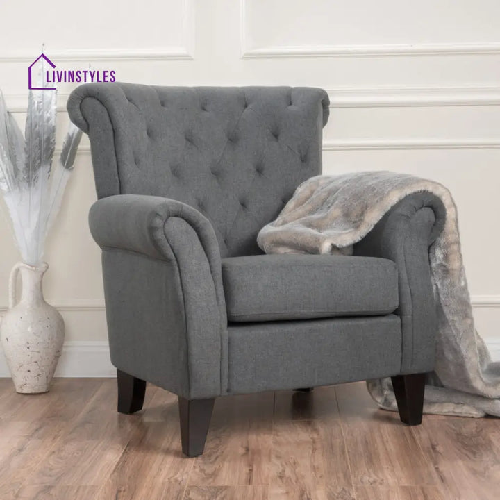 Anvita Solid Wood and Fabric Arm Chair | Living Room Chair | Lounge Chair