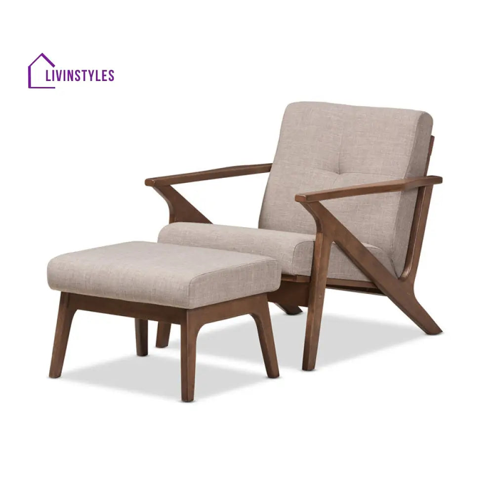 Myra Solid Wood Frame and Fabric Arm Chair | Living Room Chair | Lounge Chair + Ottoman