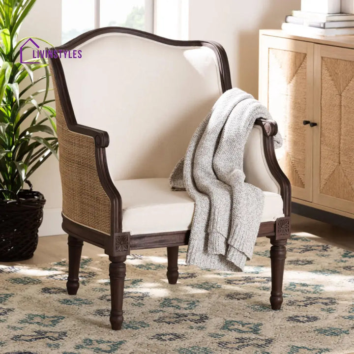 Tanvika Solid Wood and Fabric Arm Chair | Living Room Chair | Lounge Chair