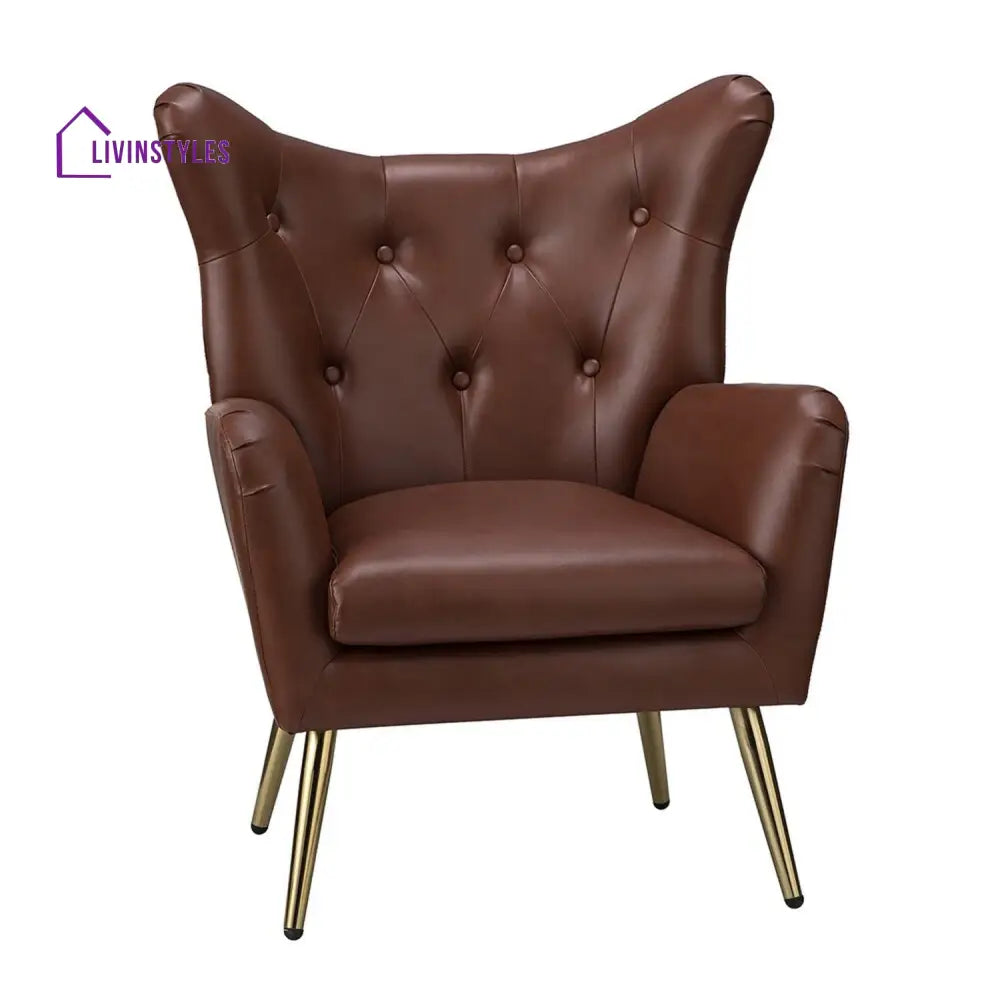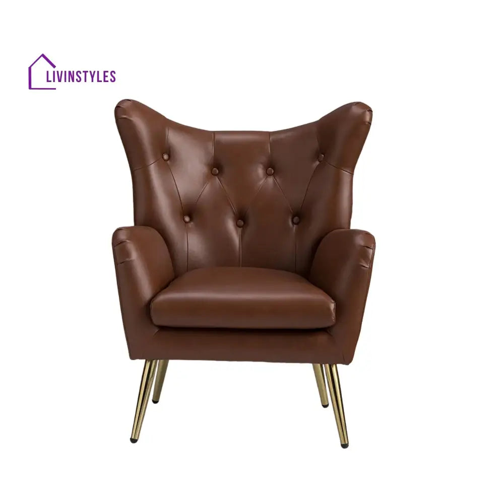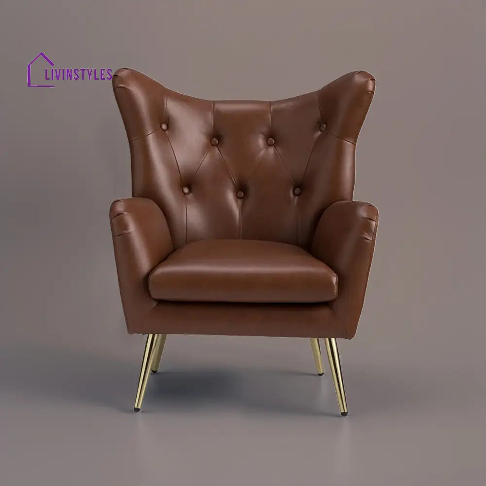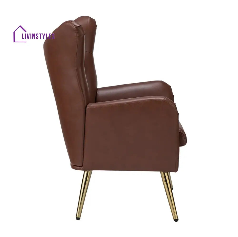 The Extravagant Single Seater Sofa Accent Chair in grey faux leather with gold metallic legs adds luxury to living rooms and bedrooms, combining sleek design with plush comfort and sophistication.