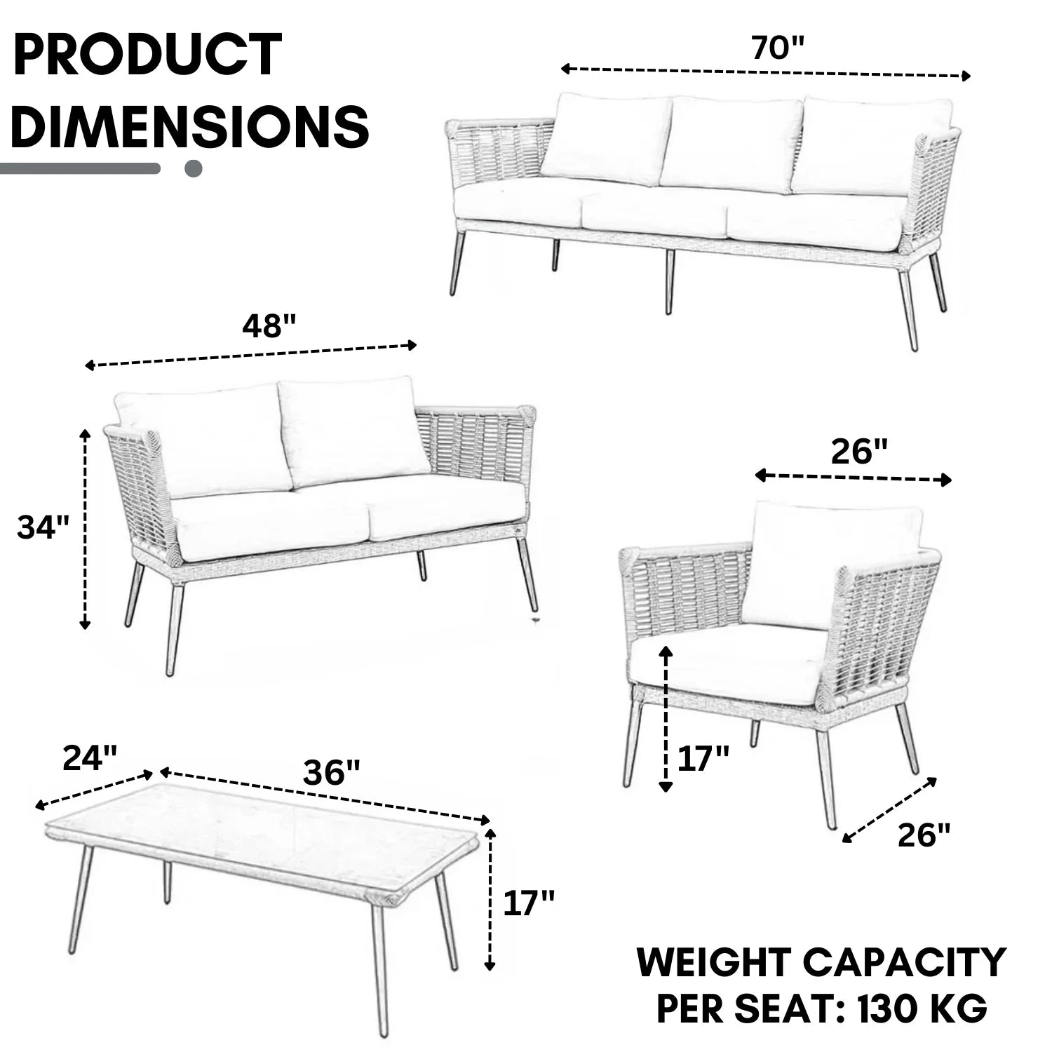 - 2 Single Seater Dimensions: 26″Lx26″Wx34″H