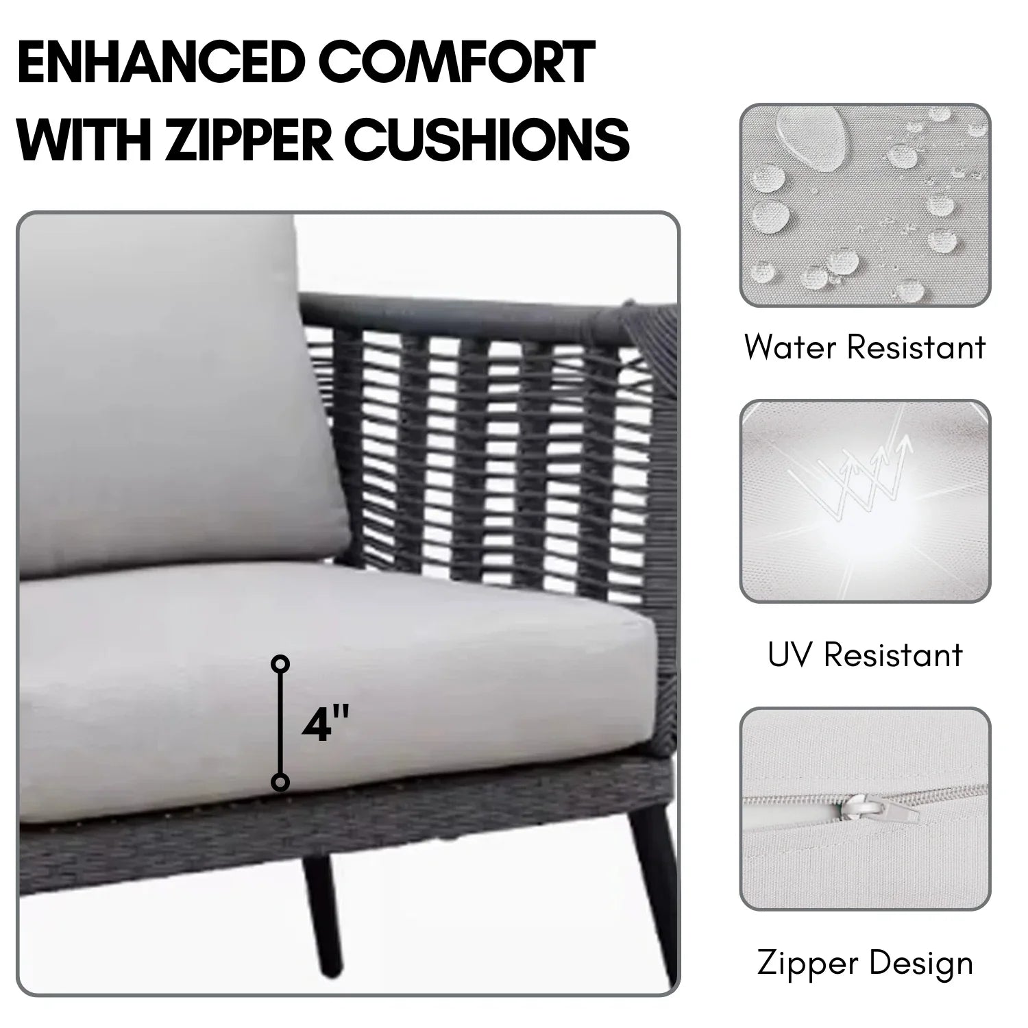 - Thickness of Cushion: 4″