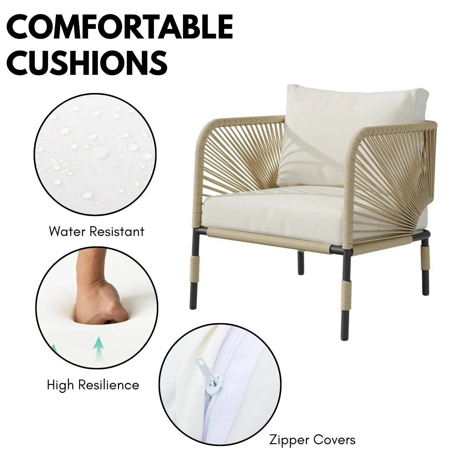 Amoura Outdoor Rope 5-Seater Sofa Set With Glass Top Table