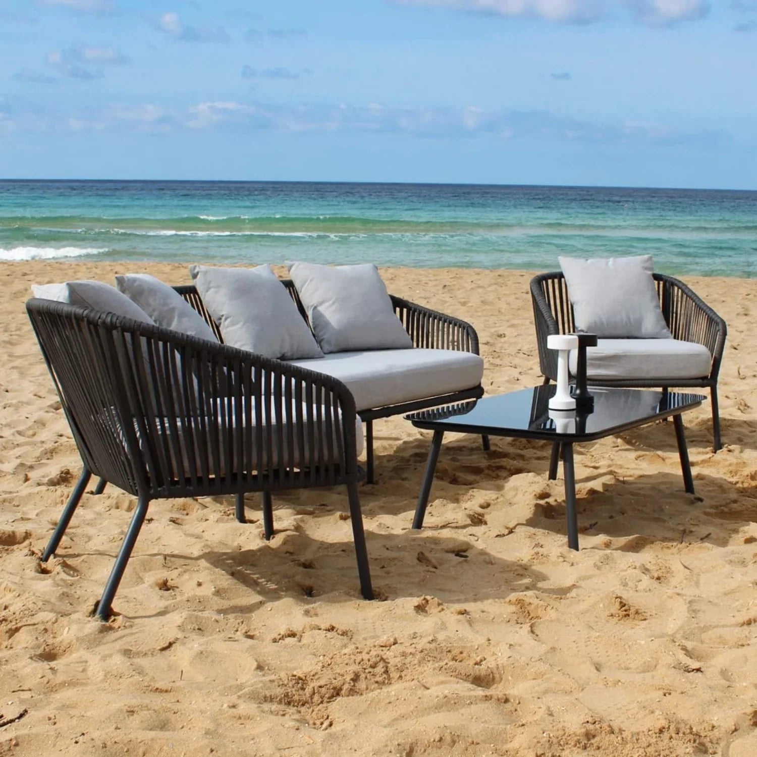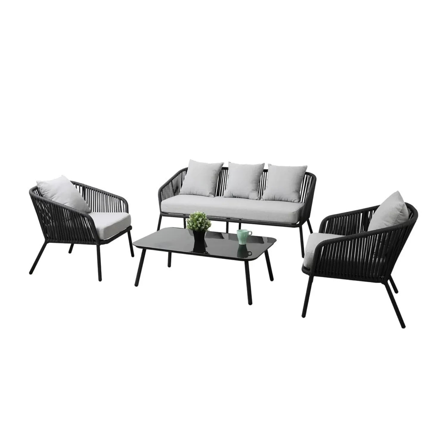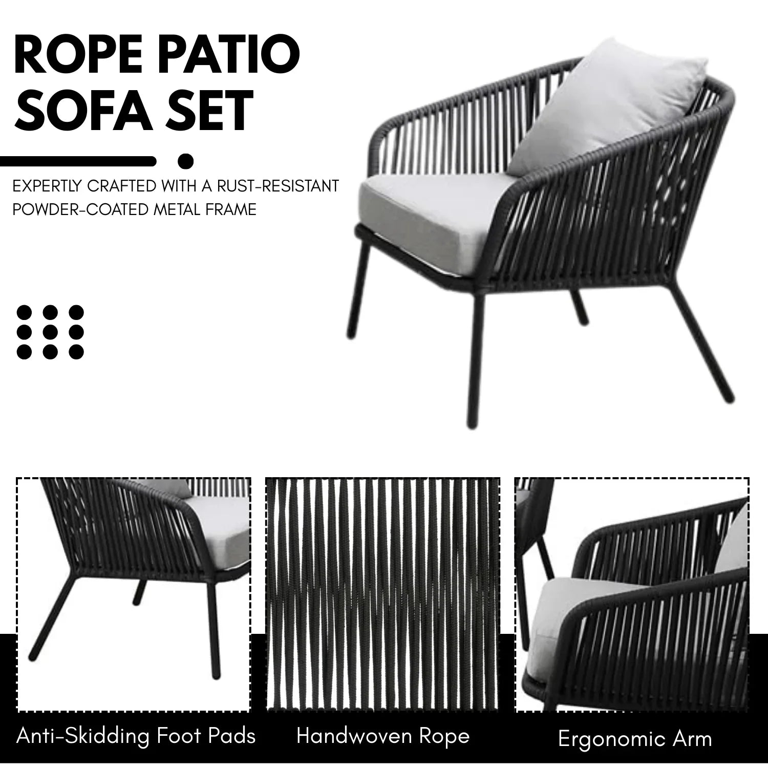 Azalea 4-Piece Outdoor Rope Patio Sofa Set (Black & Off-White)