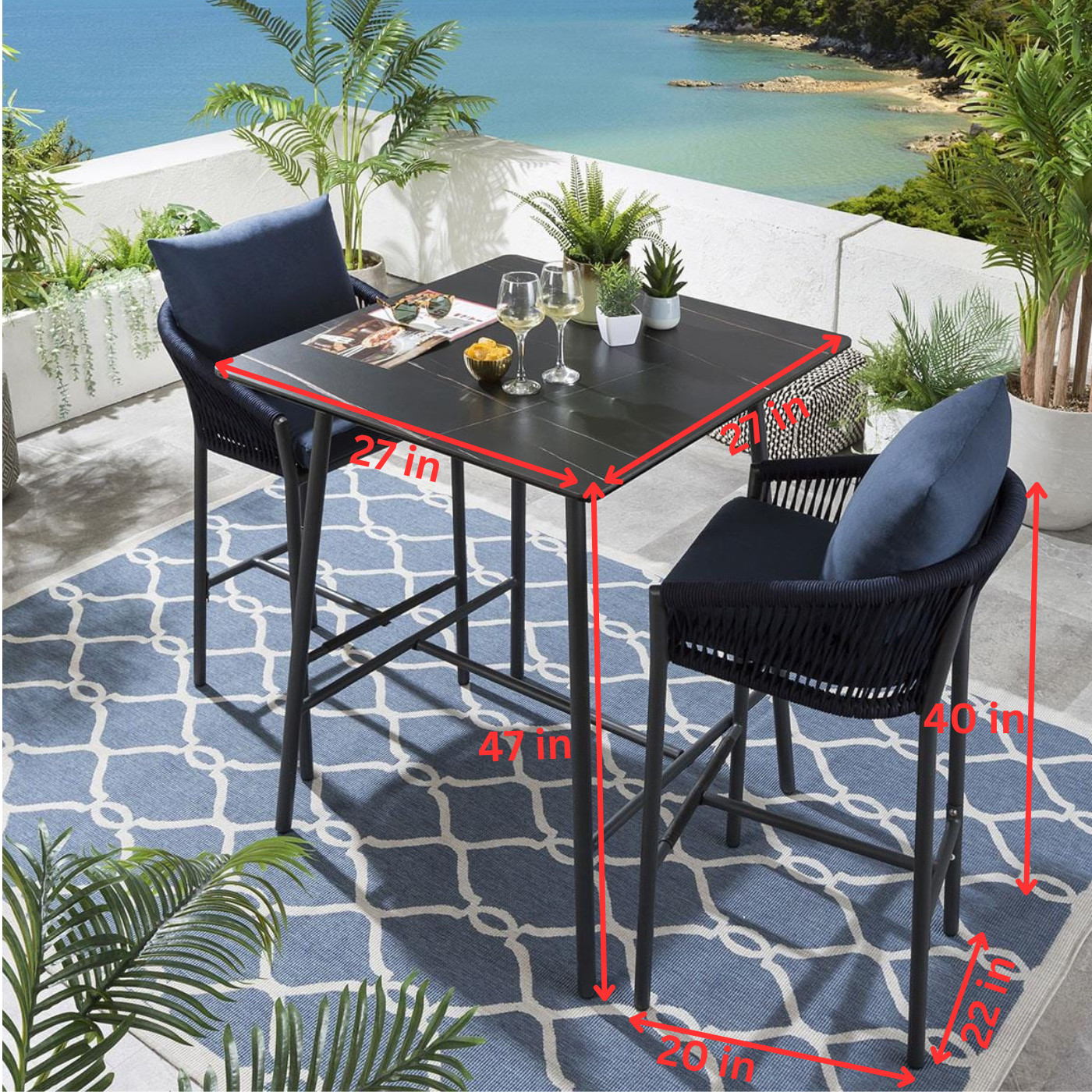 Beatriz Outdoor Patio Bar Set 2 Chairs and 1 Table Set Braided & Rope
