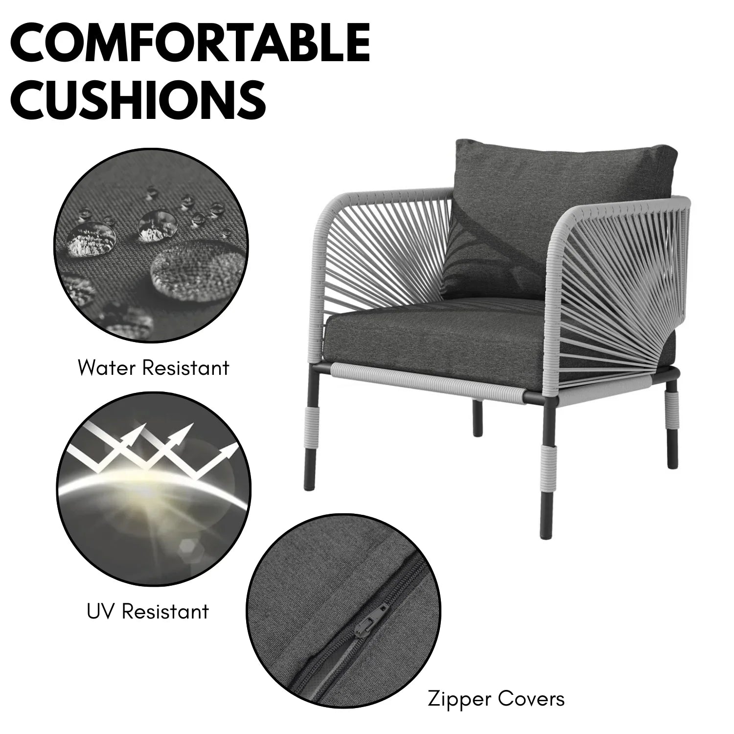 - Cushion Fabric: Water Resistant