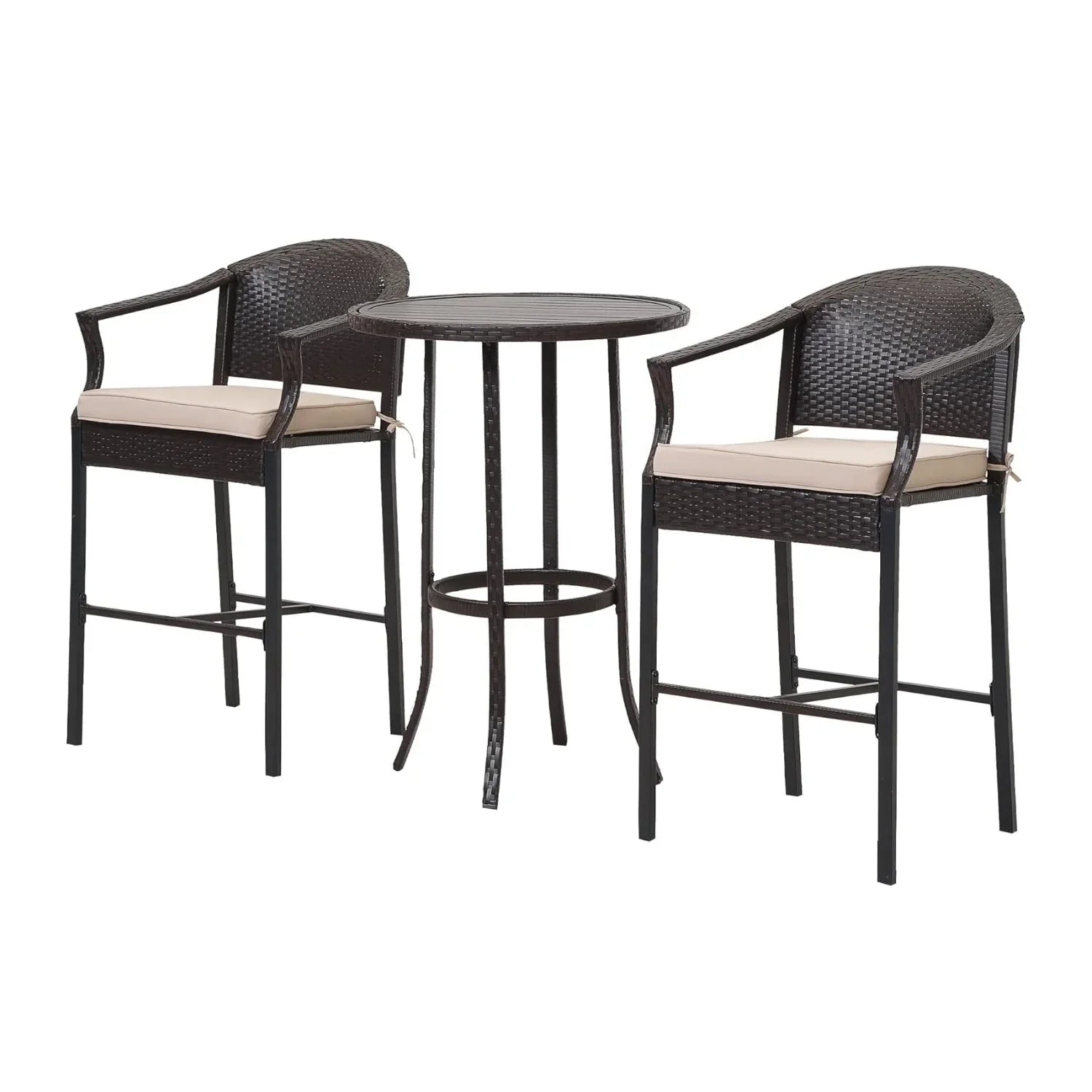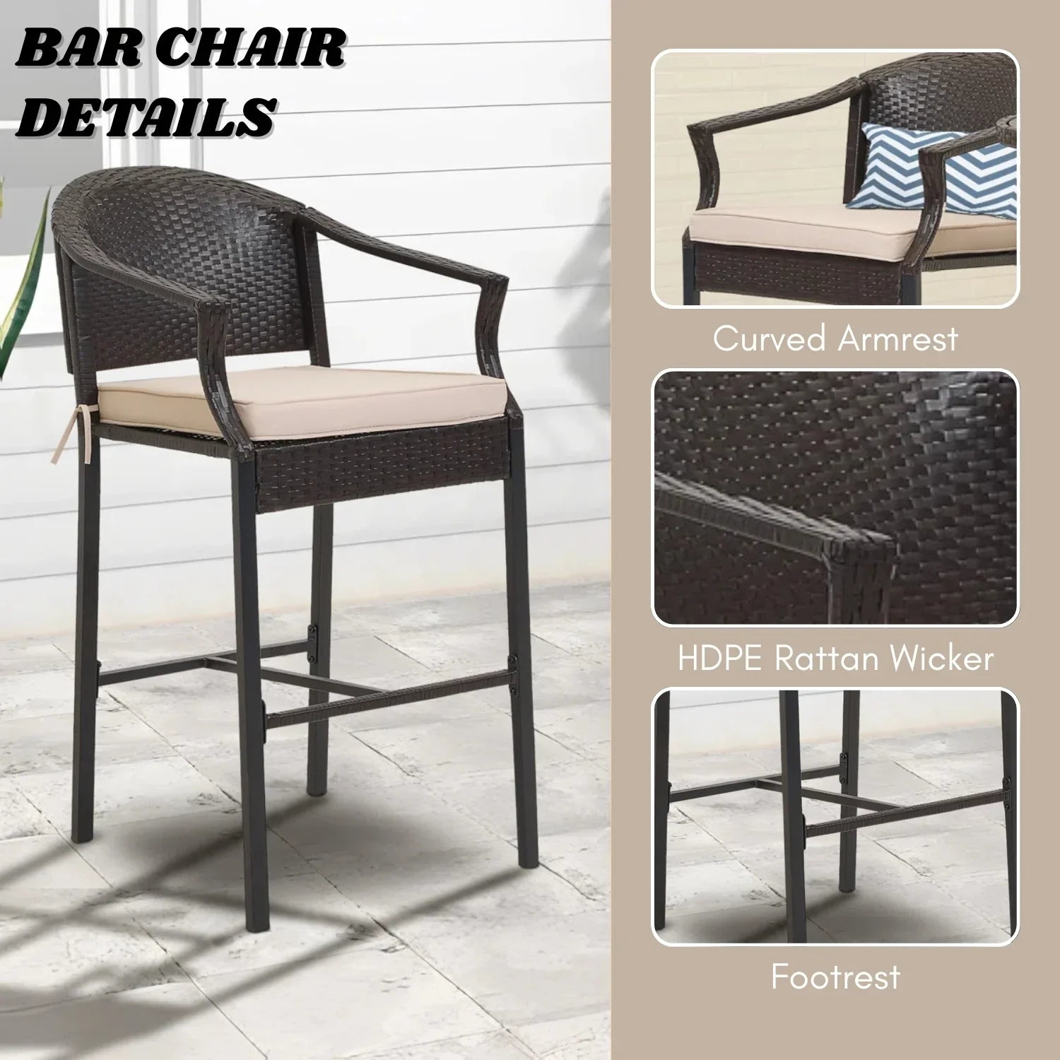 Celestina Outdoor Rattan Wicker Bar Set with Round Table