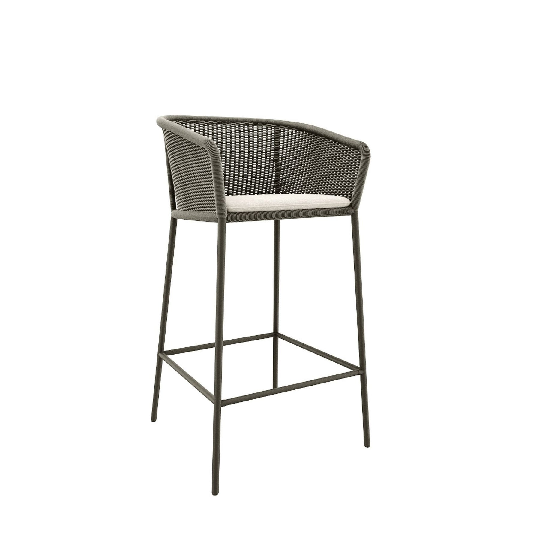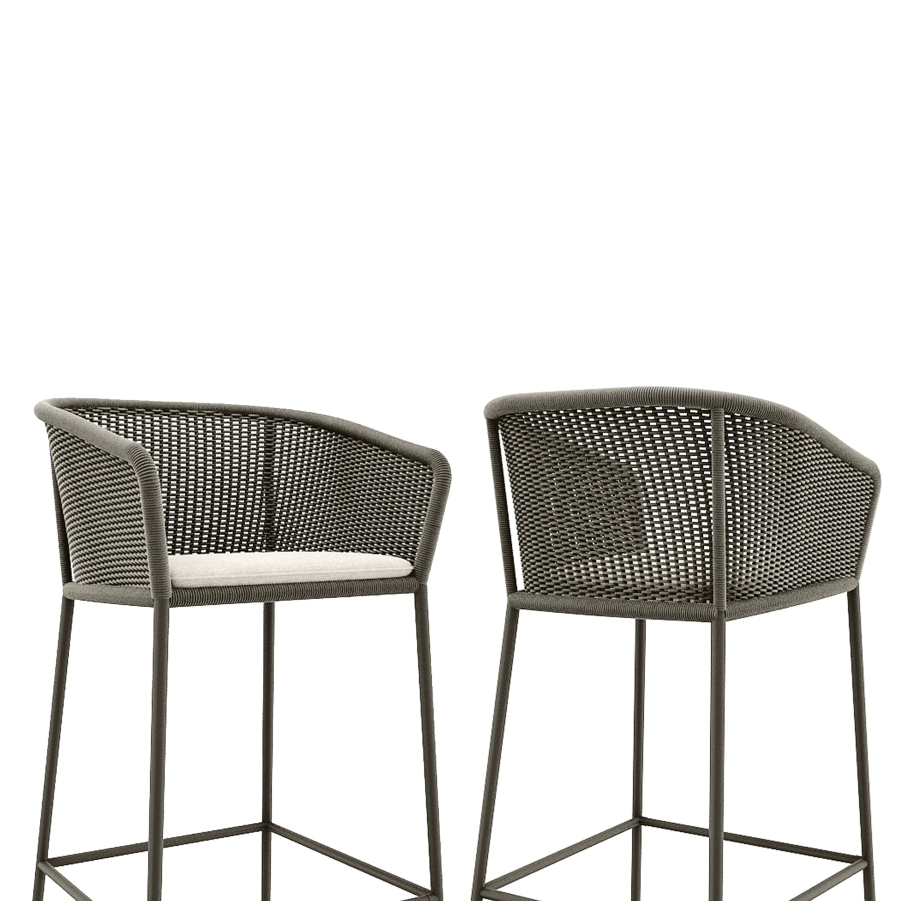 - Patio Bar Chair This includes high-top Bar chairs. The MS frames Powder coated and Handwoven With Braided & Rope seats are weather resistant to guard against inclement weather. The Bar stool is coated to guard against everyday wear and tear. The chairs can be easily stored under the high dining table making this set a perfect space saver for any outdoor area.