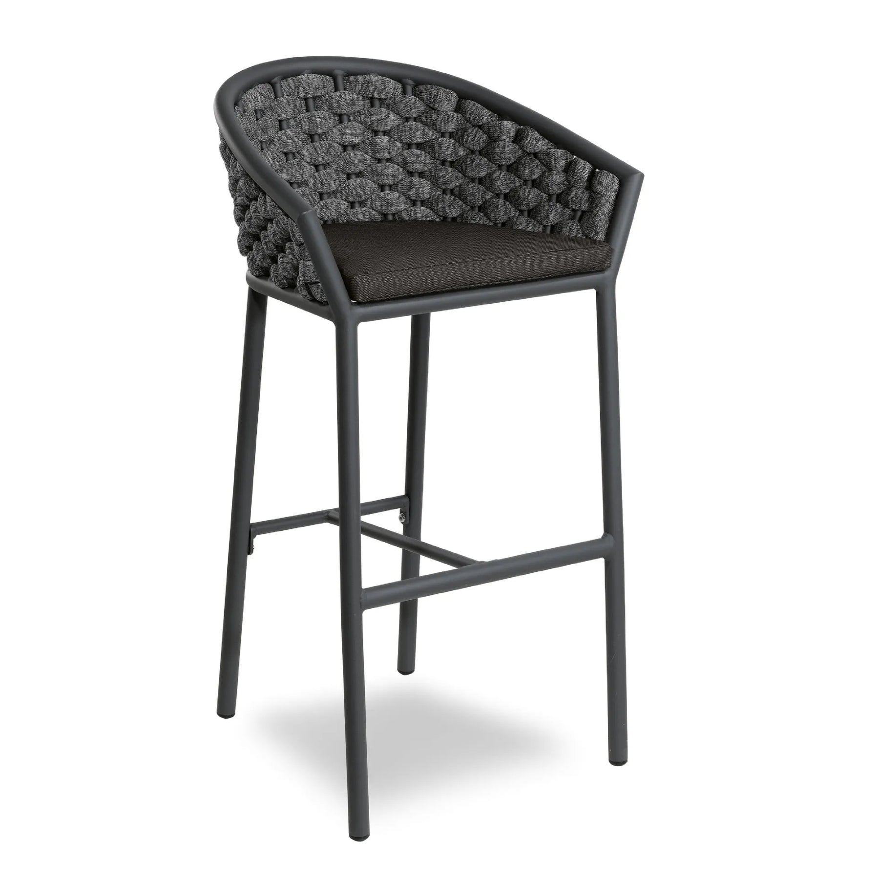 - Patio Bar Chair This includes high-top Bar chairs. The e-coated steel frames and Handwoven With Braided & Rope seats are weather resistant to guard against inclement weather. The Bar stool is coated to guard against everyday wear and tear. The chairs can be easily stored under the high dining table making this set a perfect space saver for any outdoor area.