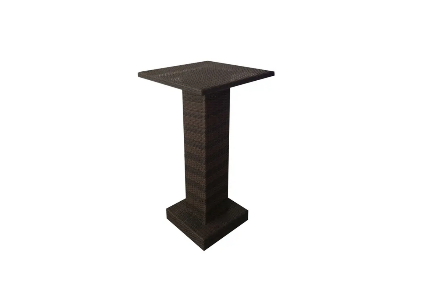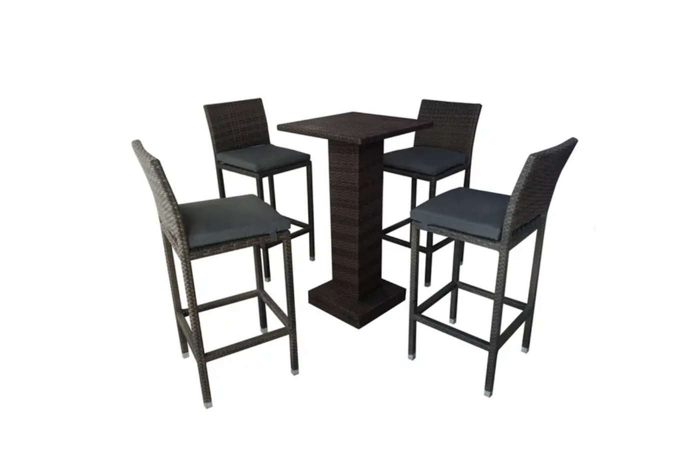 - Patio Bar Chair This includes high-top Bar chairs. The e-coated steel frames and hand-woven wicker seats are weather resistant to guard against inclement weather. The Bar stool is coated to guard against everyday wear and tear. The chairs can be easily stored under the high dining table making this set a perfect space saver for any outdoor area.