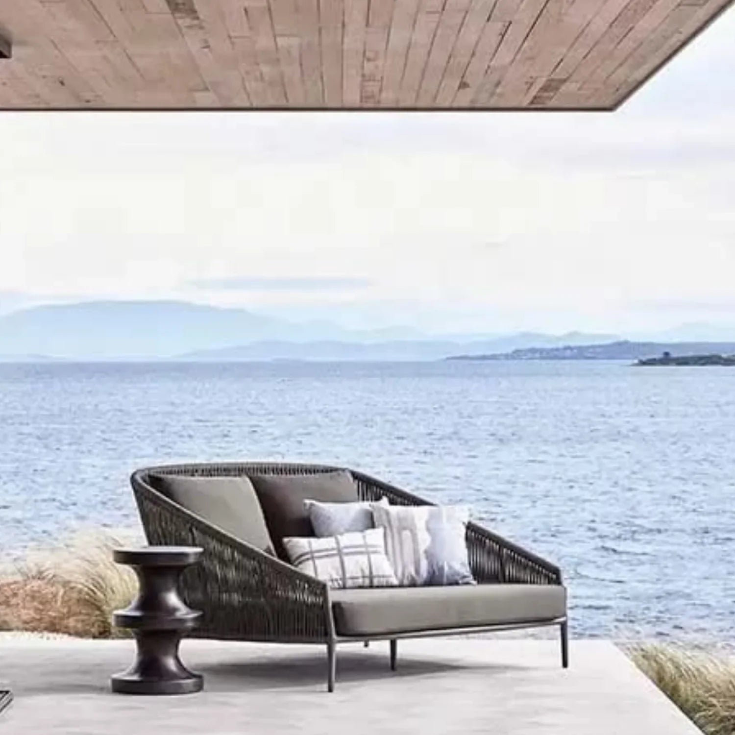 Delphine Outdoor Grey Rope Patio Daybed with Comfortable Dark Grey Cushion