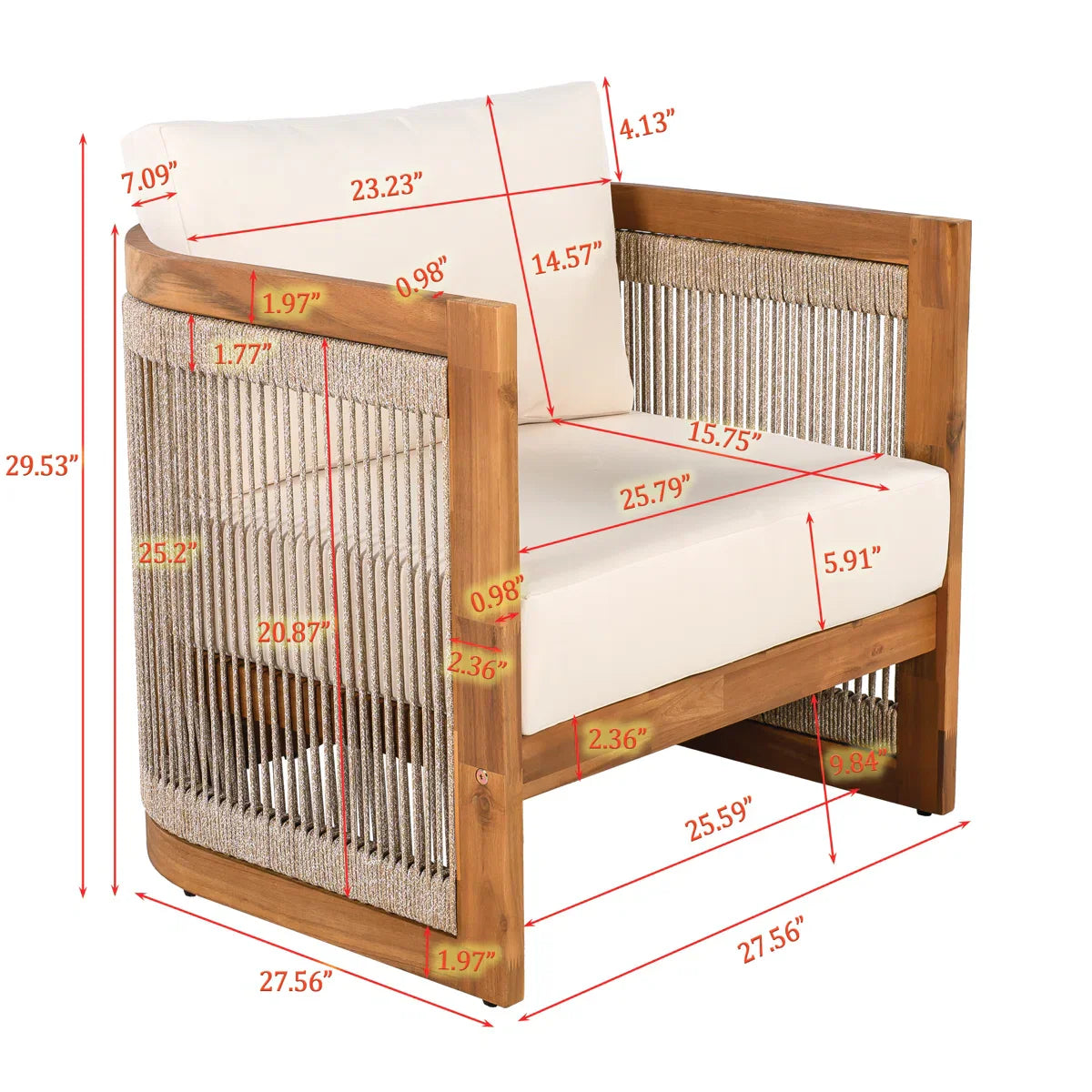 Single Seat: Width 27 inches, D 27 inches, Height 29 inches