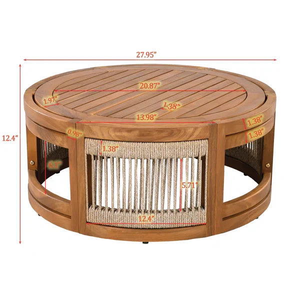Table: Width 27 inches, D 27 inches, Height 12 inches