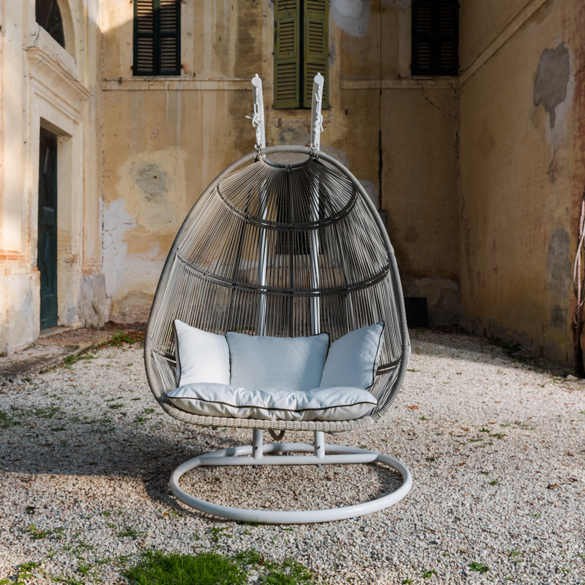 Flores Double Seater Hanging Swing With Stand For Balcony, Garden Swing (White+Grey)