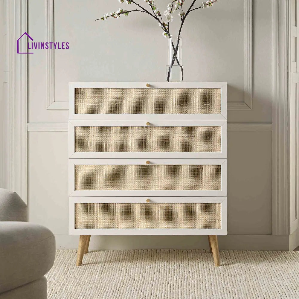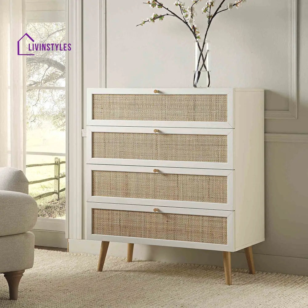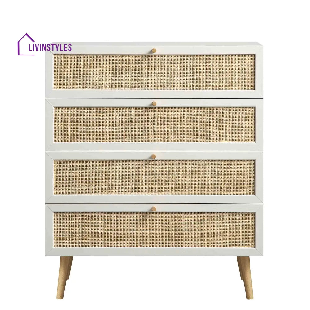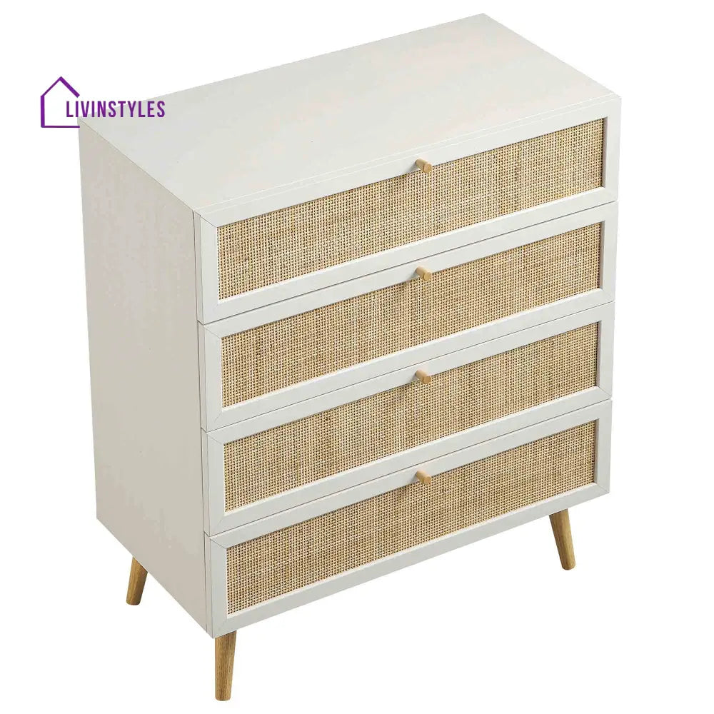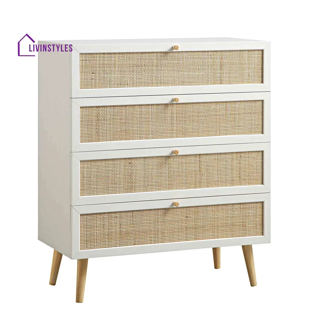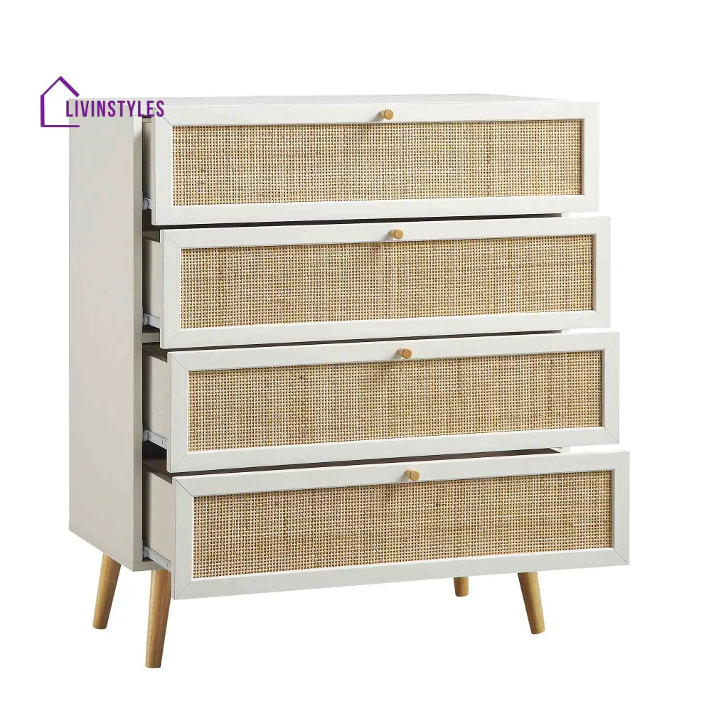 Gitali Rattan Tall Chest of 4 Drawers, White