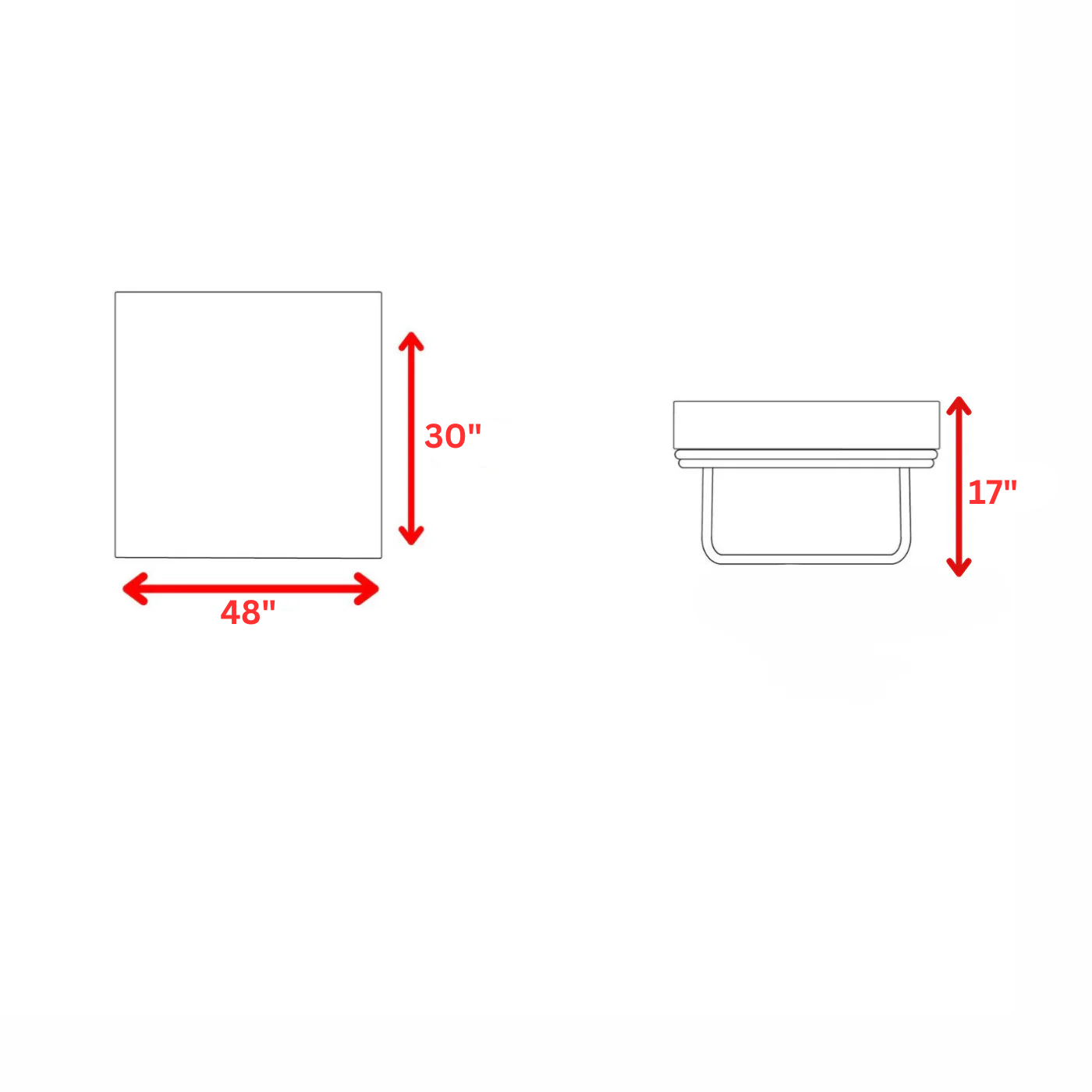 Table: Width 48 inch, D 48 inch, Height 17 inch