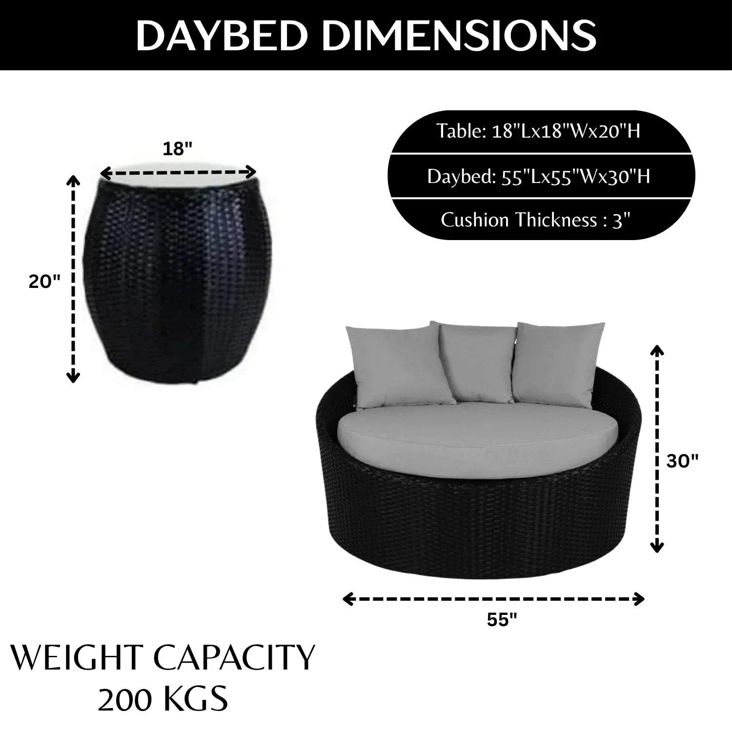 - Cushion Thickness: 3″