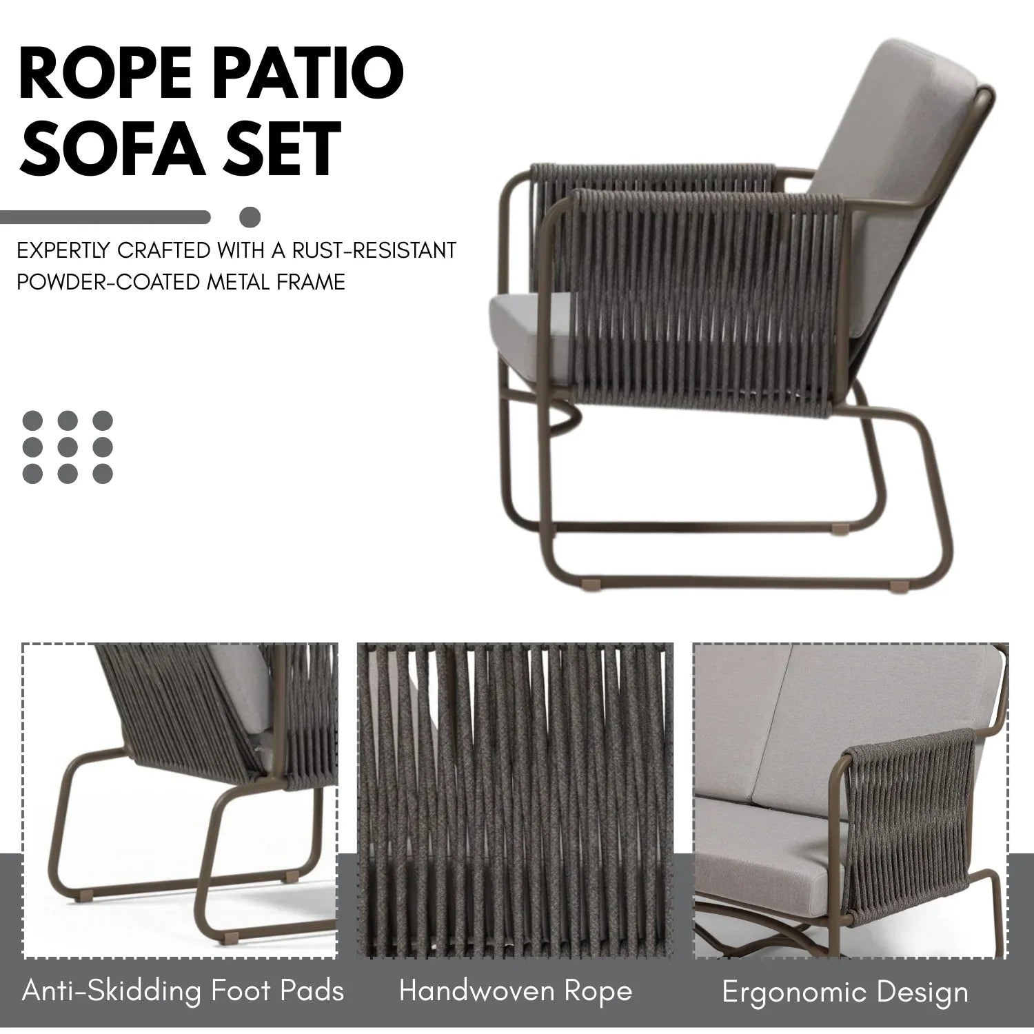 Isabeau Outdoor Rope Loveseat Sofa Set With Wooden Top Table