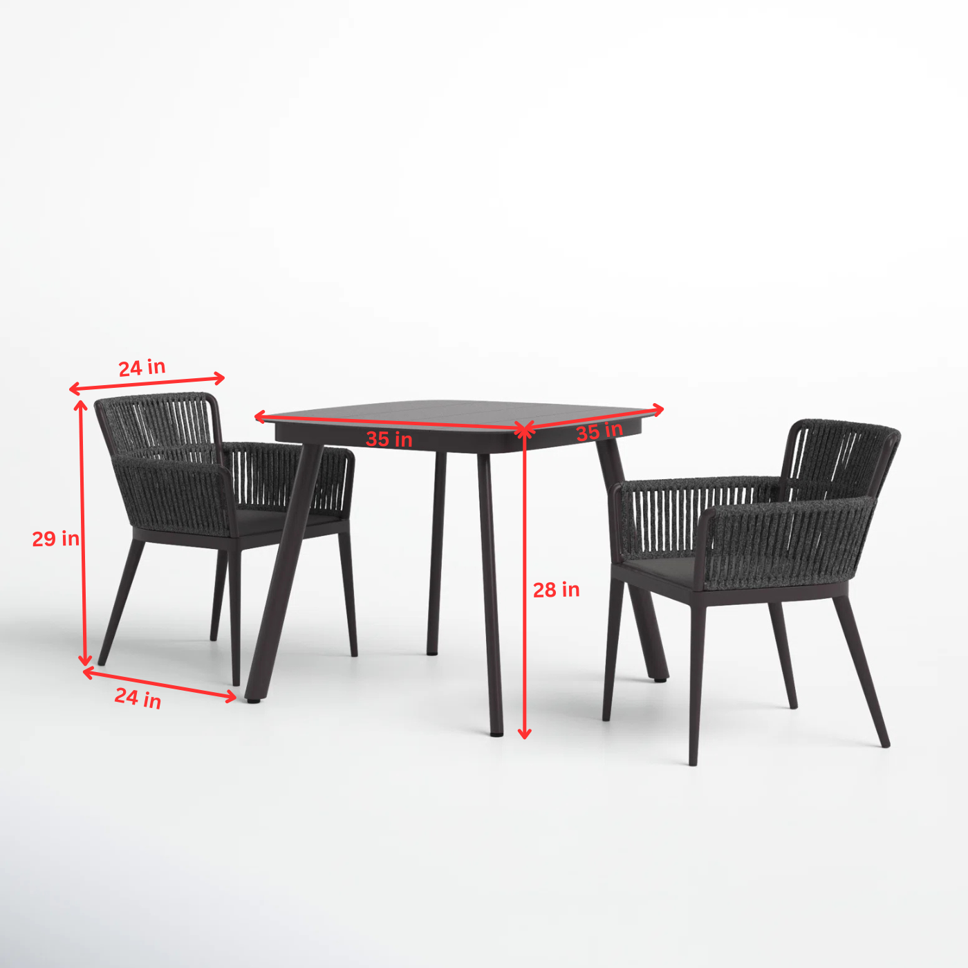 Chair: L 24 x W 24 x H 29 Inches